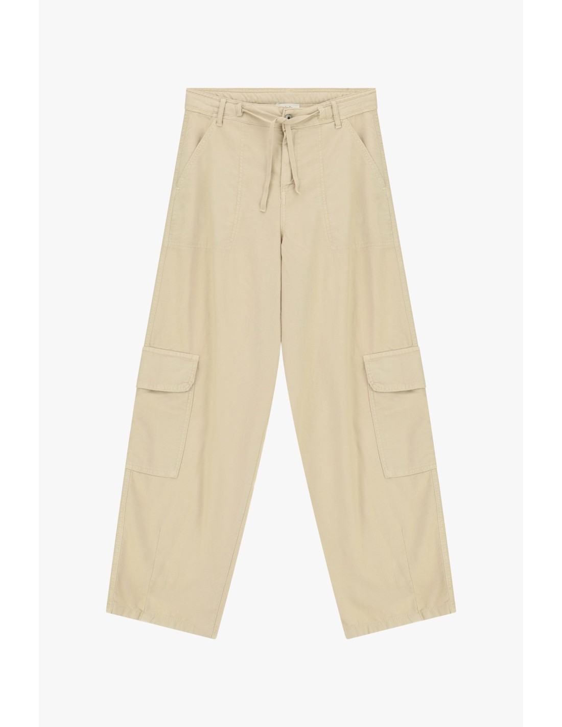 Estas calças palazzo de corte largo são perfeitas para te sentires confortável em qualquer momento do dia. Os bolsos cargo laterais acrescentam um toque original e prático, ideais para levares contigo tudo o que necessitas. Cintura com cordão e passadores para ajustares o caimento conforme preferires.