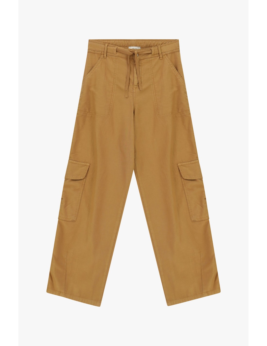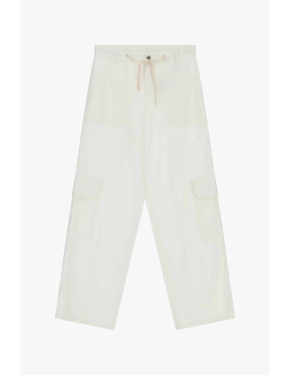 Estas calças palazzo de corte largo são perfeitas para te sentires confortável em qualquer momento do dia. Os bolsos cargo laterais acrescentam um toque original e prático, ideais para levares contigo tudo o que necessitas. Cintura com cordão e passadores para ajustares o caimento conforme preferires.