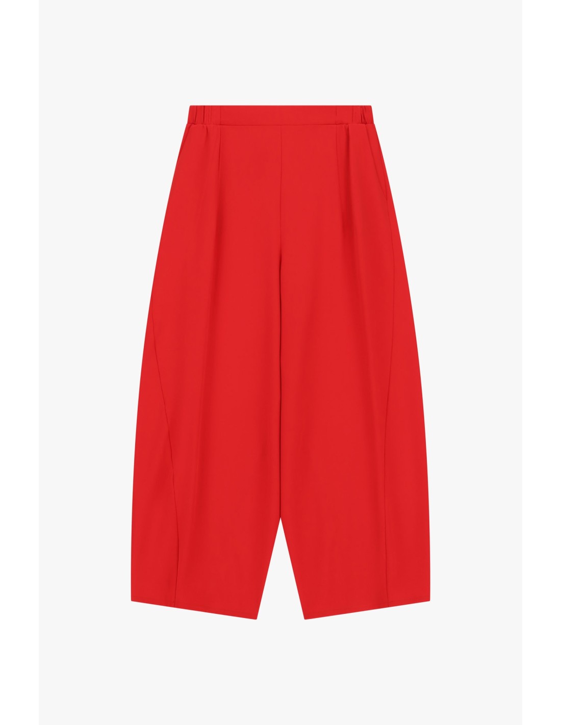 Calças palazzo de corte amplo e contemporâneo, com perna curta e largura decidida. O elástico na cintura garante conforto e um ajuste descontraído, perfeito para o dia a dia. Linhas limpas e silhueta fluida: ideal para quem quer expressar estilo sem renunciar à praticidade.
