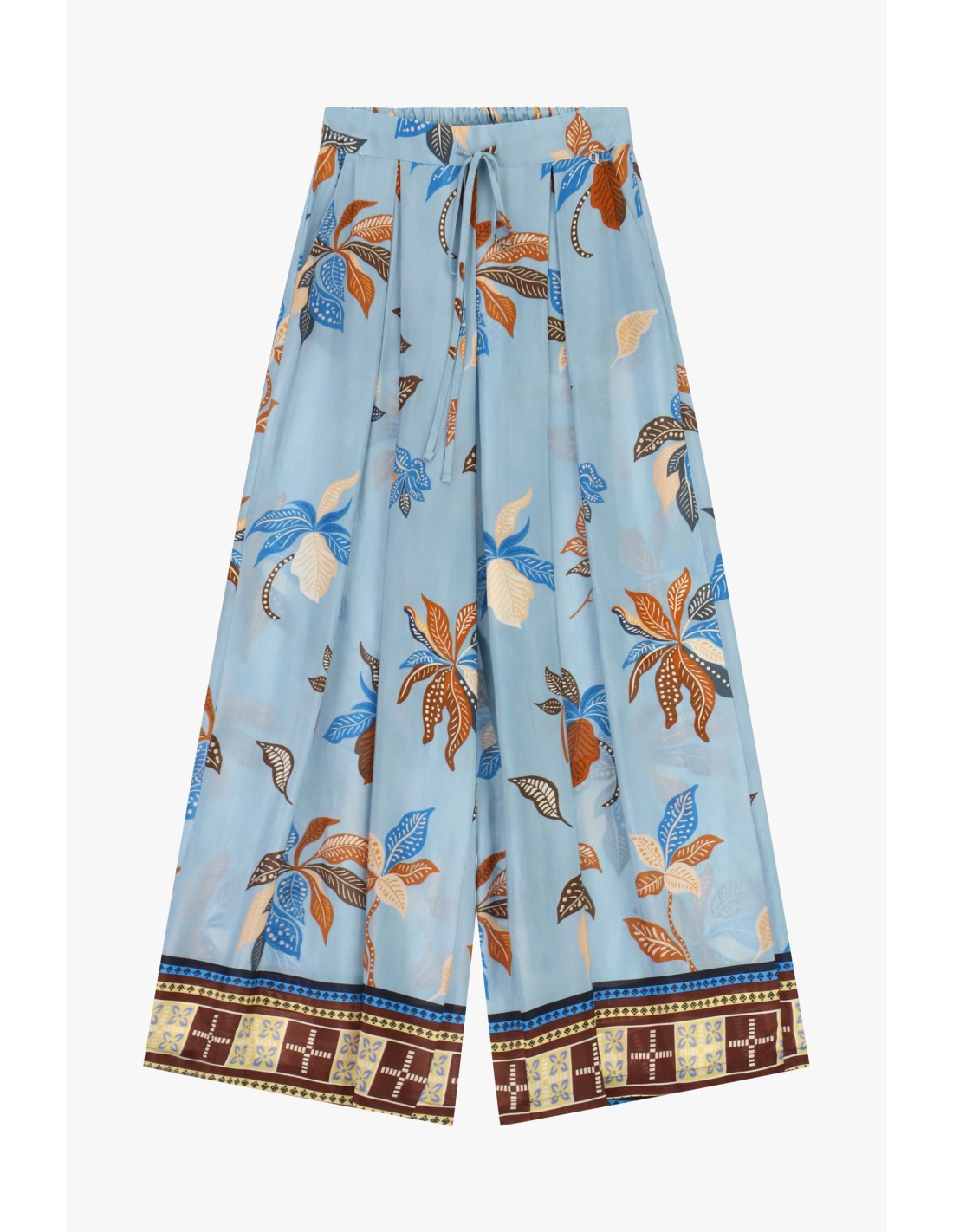Calças Palazzo Estampadas Com Cintura Alta E Cordão Dixie
