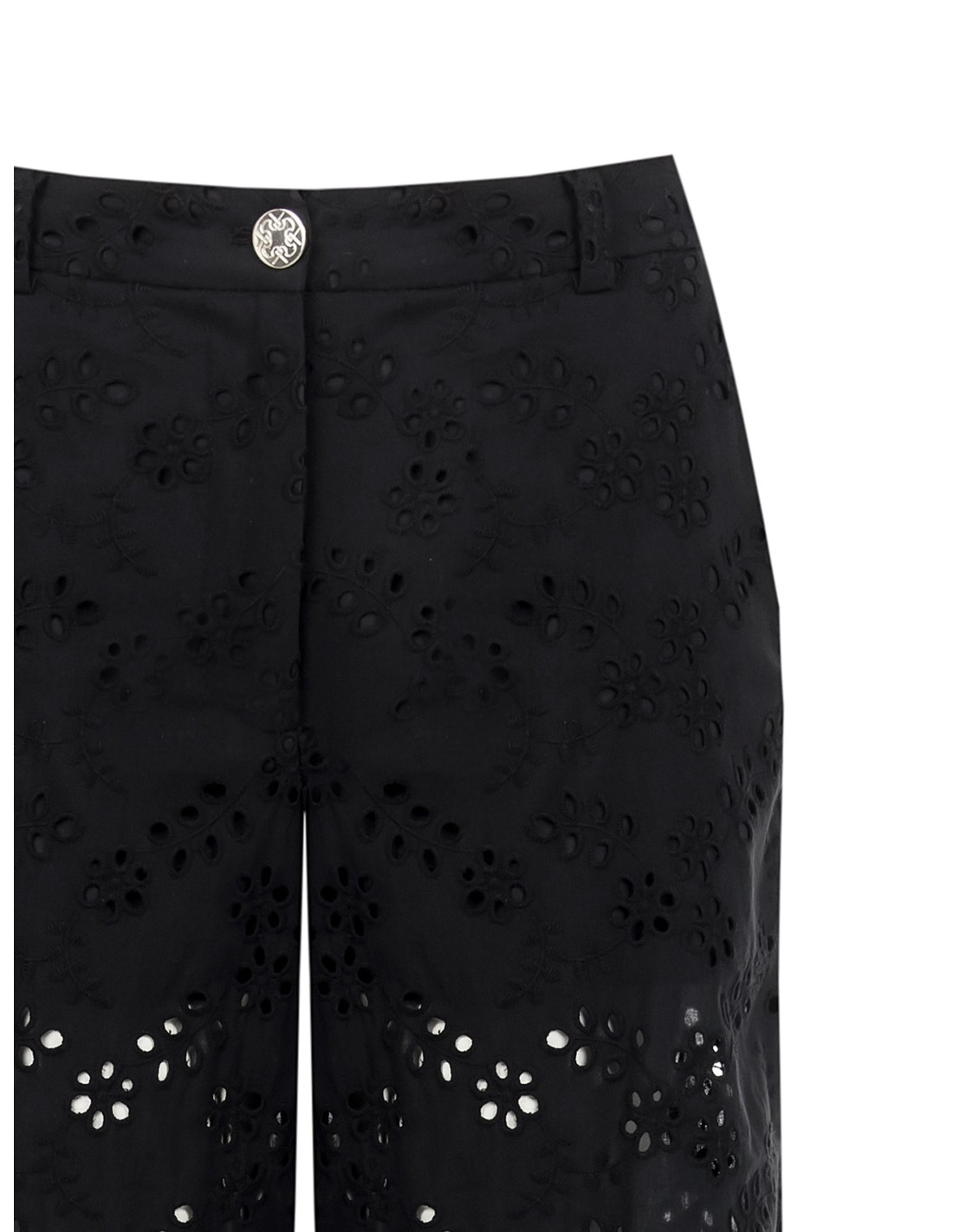 Corte amplo e cintura regular para uma silhueta esguia e feminina. Em algodão sangallo com textura vazada, com calções integrados para conforto e segurança e botão joia na cintura. Perfeitos do escritório ao aperitivo, com elegância leve e versátil.