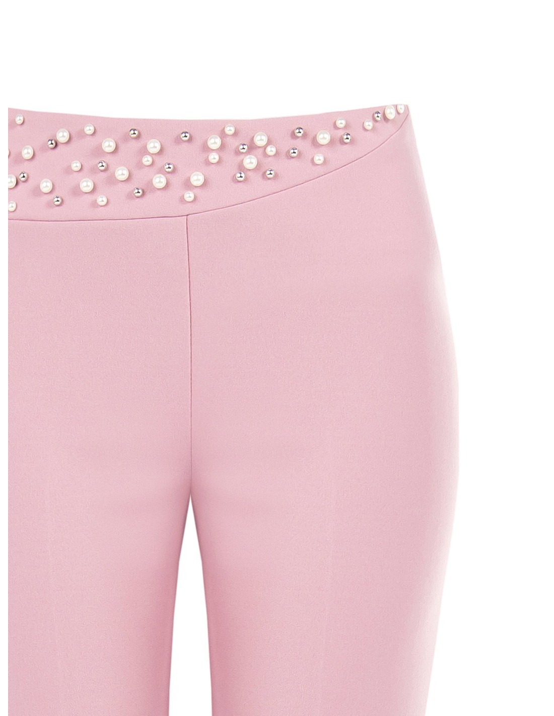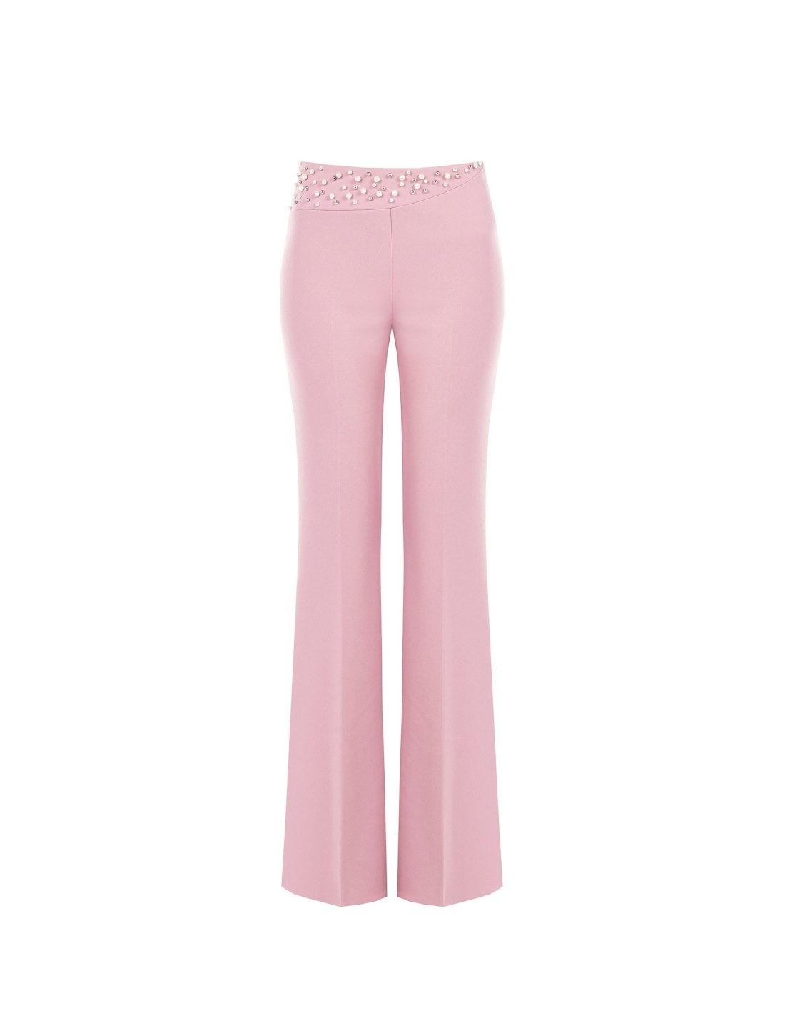 Corte amplo e fluido em suave scuba crepe que alonga a silhueta sem renunciar ao conforto. A cintura alta é ornada com um bordado de pérolas e strass que ilumina a zona da cintura. Perfeitos com um top essencial para cerimónias, festas elegantes e ocasiões especiais.