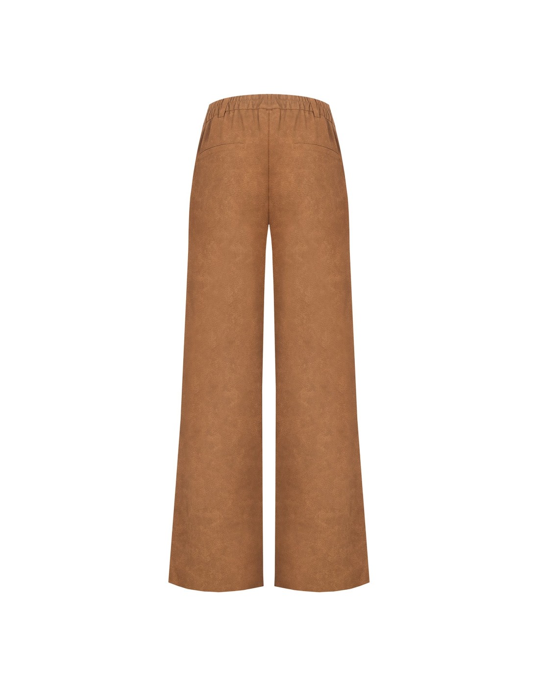 Calças de perna larga em suave pele sintética camurçada, com ligeiras tonalidades que conferem profundidade à textura. A cintura com elástico na parte de trás e fecho frontal com botão realça a silhueta e garante conforto, perfeitas do escritório ao pós-trabalho.