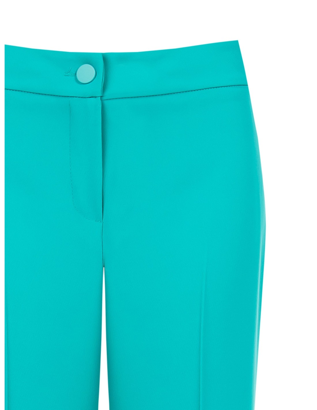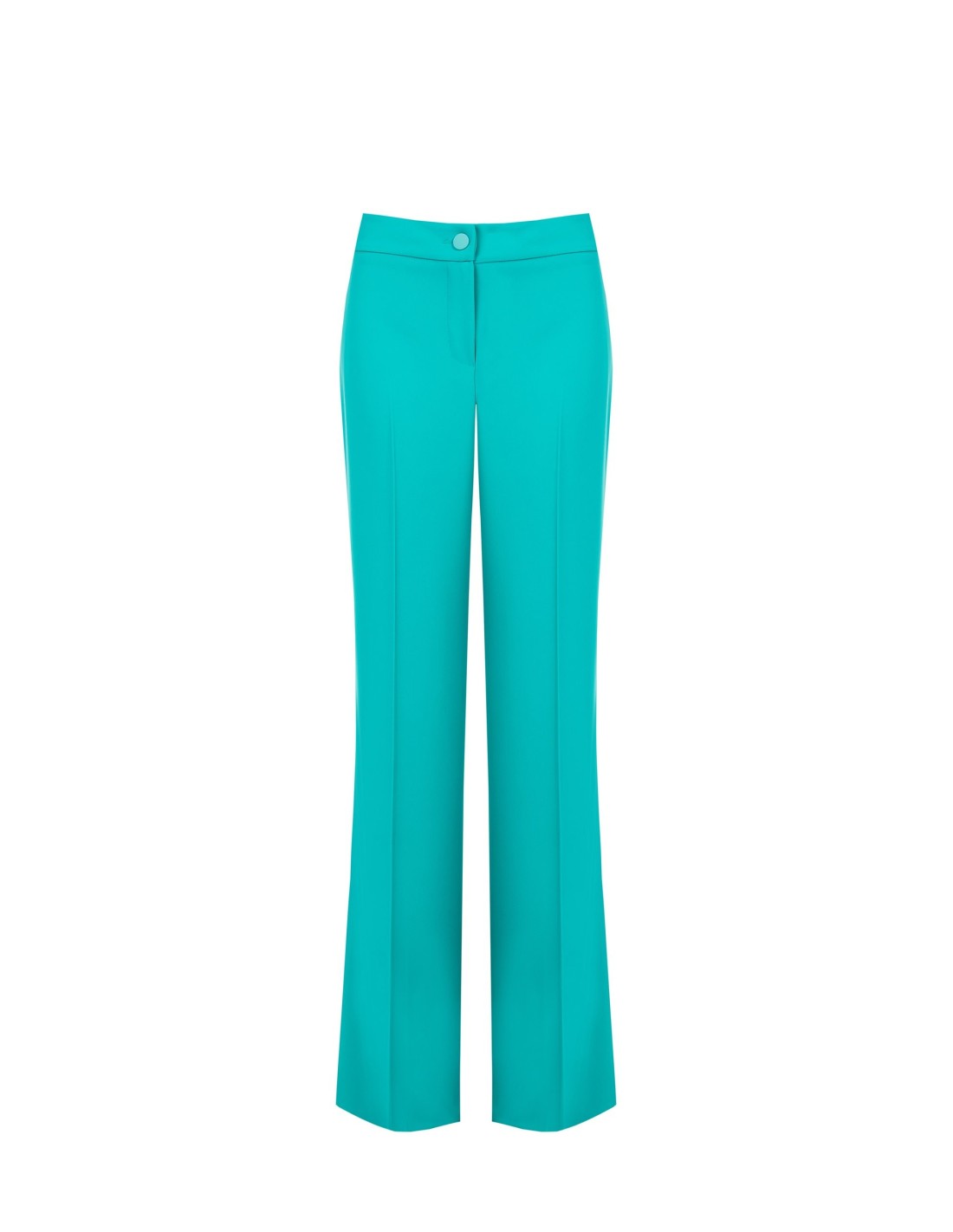 Este modelo de perna larga apresenta um corte fluido que alonga a silhueta e acompanha os movimentos com conforto. O tecido liso e macio cai com elegância, enquanto a prega frontal e o botão joia metálico acrescentam caráter. Perfeito do escritório ao aperitivo.