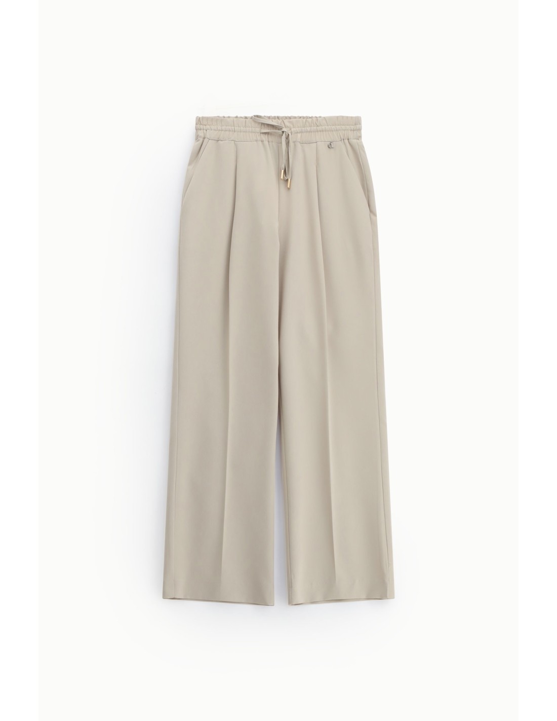 Estas calças palazzo oferecem-te uma silhueta ampla e leve graças à perna larga e à cintura elástica ajustável com cordão. As pences frontais acrescentam um toque sofisticado, enquanto os bolsos laterais são perfeitos para a praticidade do dia a dia. Imagina a liberdade de movimento e o conforto em qualquer ocasião.