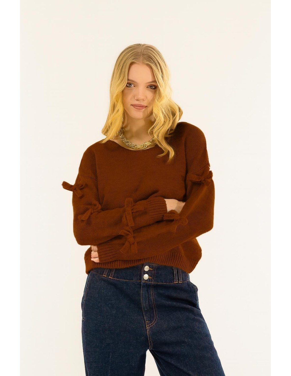 Uma peça que conquista à primeira vista: pormenores românticos de laço nas mangas, suavidade envolvente e estilo intemporal. Perfeito para quem gosta de ser sofisticada e feminina em todas as ocasiões. Um toque chique irresistível para o seu guarda-roupa.