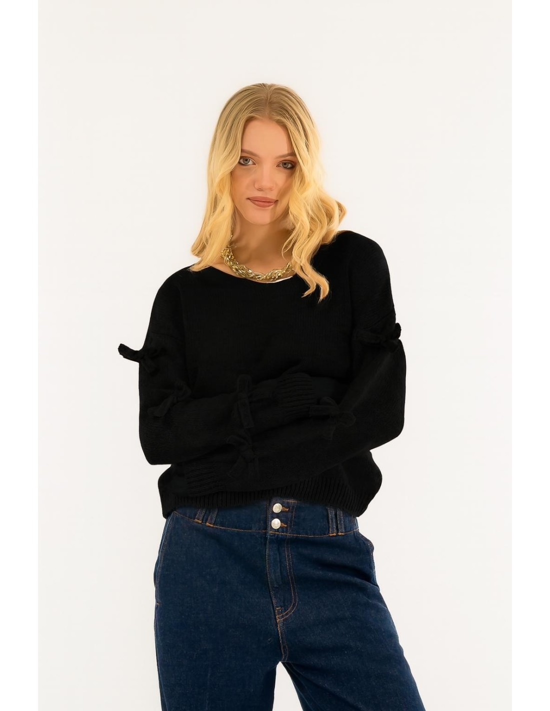 Uma peça que conquista à primeira vista: pormenores românticos de laço nas mangas, suavidade envolvente e estilo intemporal. Perfeito para quem gosta de ser sofisticada e feminina em todas as ocasiões. Um toque chique irresistível para o seu guarda-roupa.