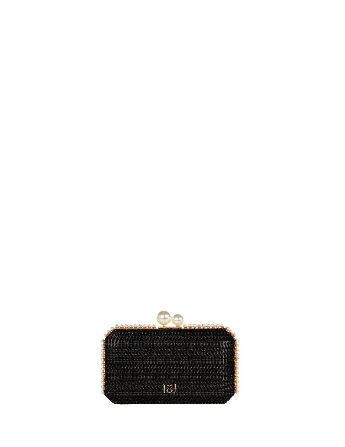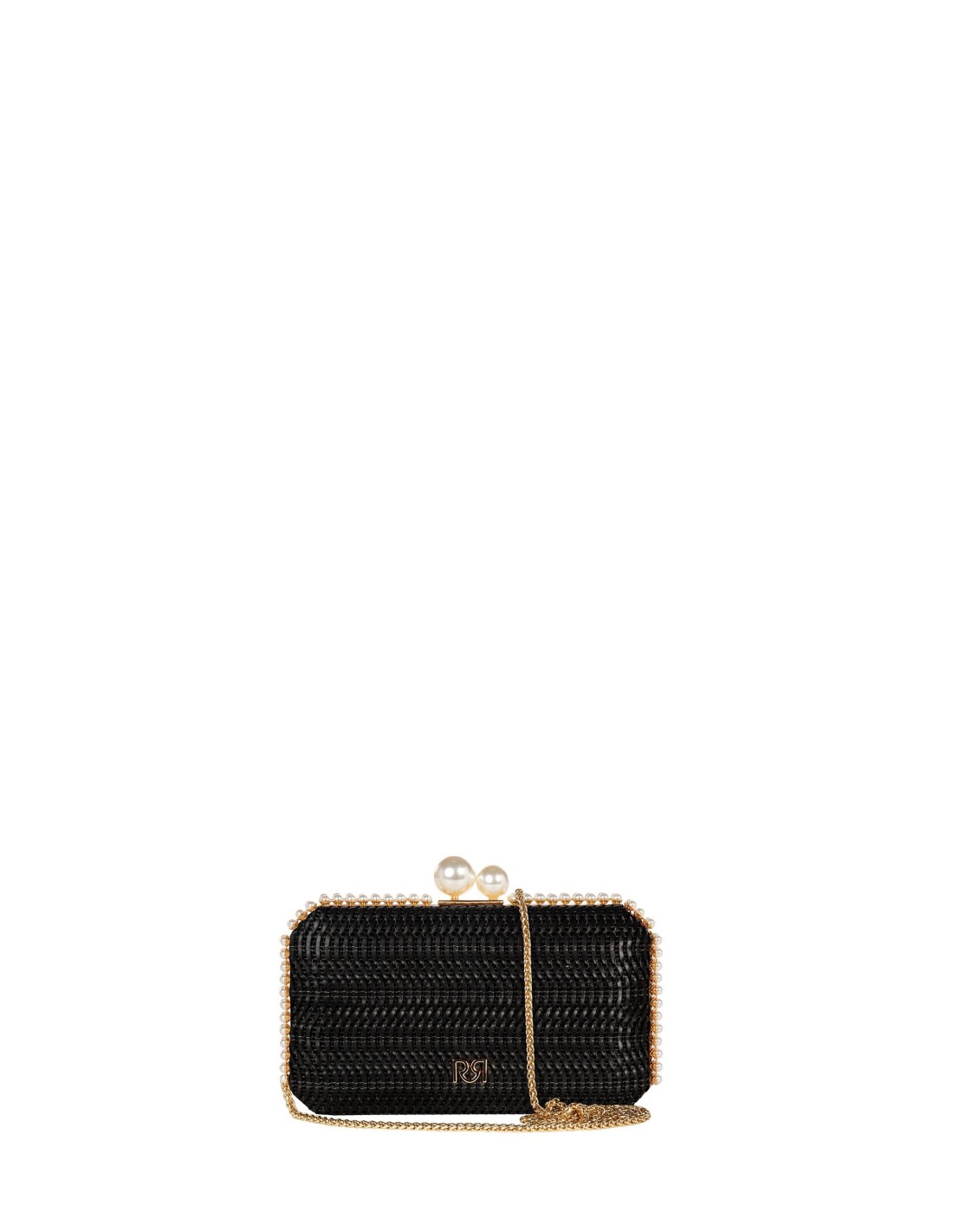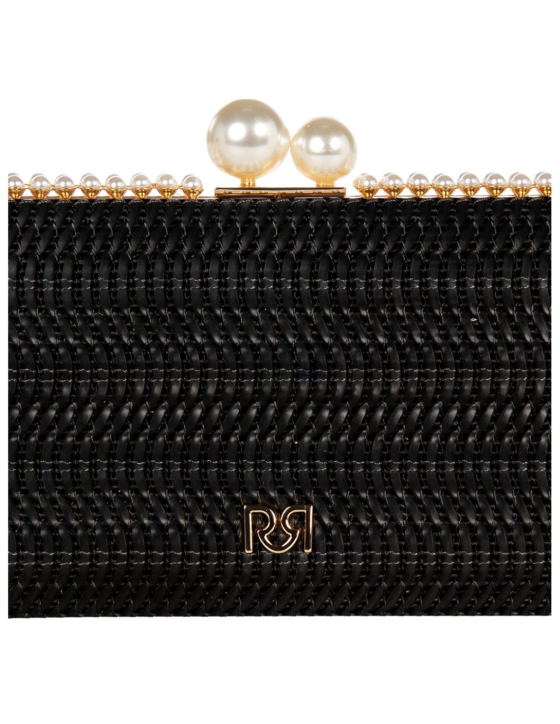 Clutch Rígida Entrelaçada Com Efeito Palha, Acabamento Em Pérolas E Alça De Corrente Removível Rinascimento