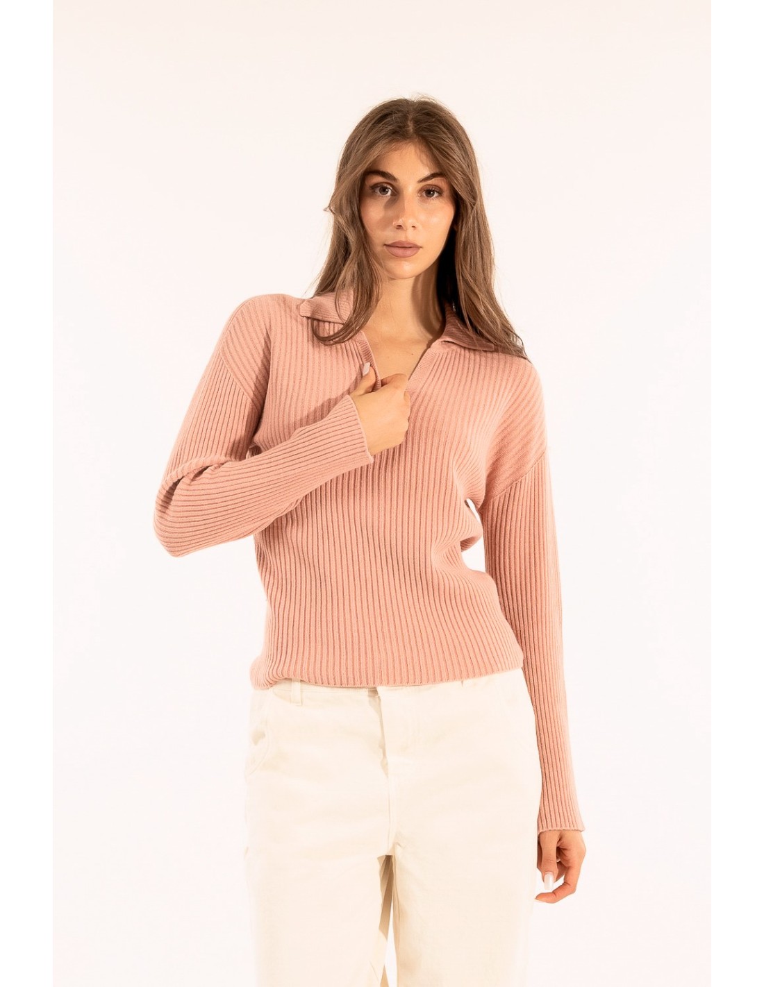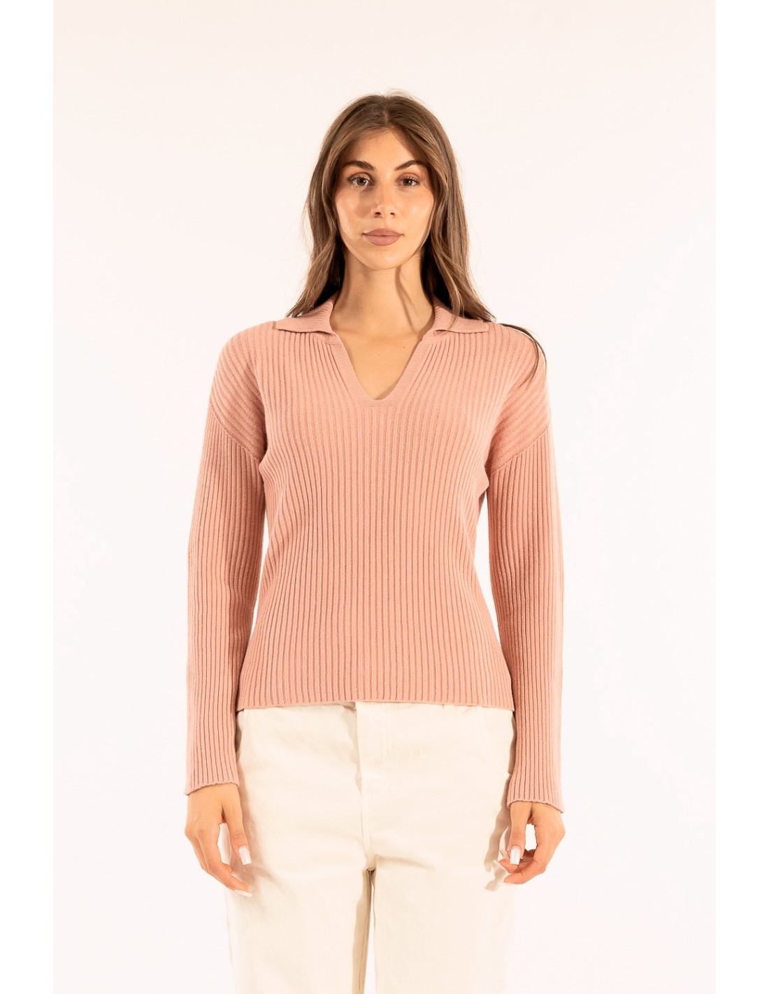 Kontatto assina uma camisola canelada com corte regular que define a silhueta sem apertar. Malha macia de trama compacta, agradável na pele. Gola com decote em V e ombros ligeiramente caídos para uma aura descontraída. Versátil: perfeita com denim para o dia a dia ou com calças de alfaiataria no escritório.