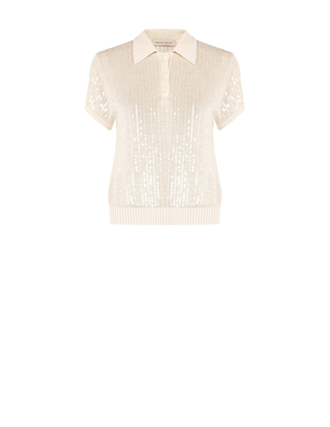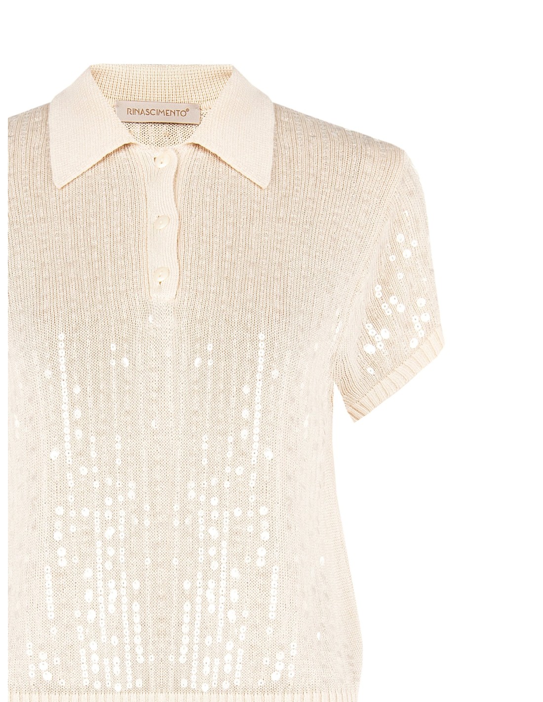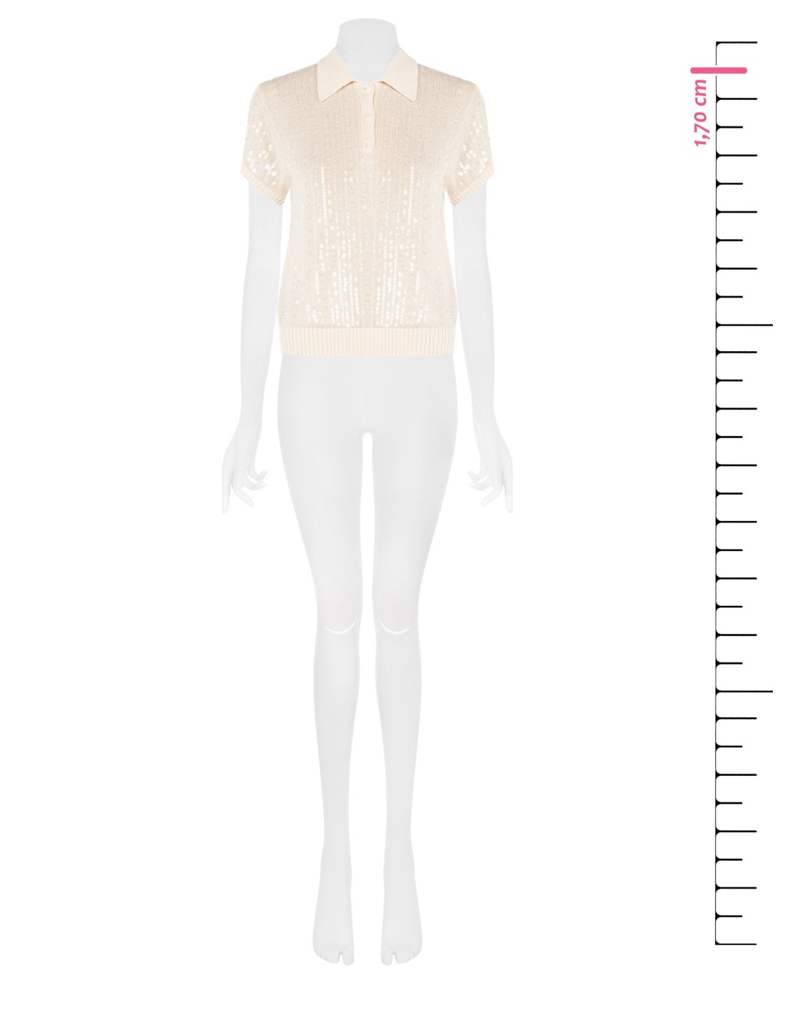 Polo Em Malha Coberta De Lantejoulas Transparentes Rinascimento