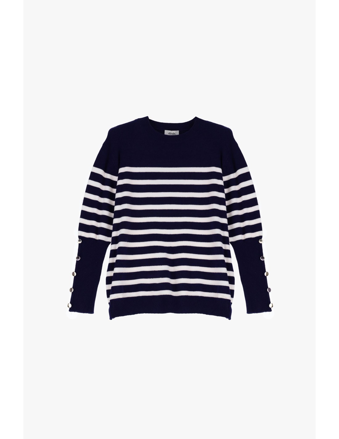 Descubra o equilíbrio perfeito entre estilo e conforto com esta camisola às riscas que acrescenta um toque de originalidade ao seu guarda‑roupa. As linhas clássicas entrelaçam‑se com detalhes modernos, como os botões ao longo dos lados das mangas, para um ajuste descontraído mas cuidado. Ideal para combinar com jeans ou saias para um look casual e requintado.