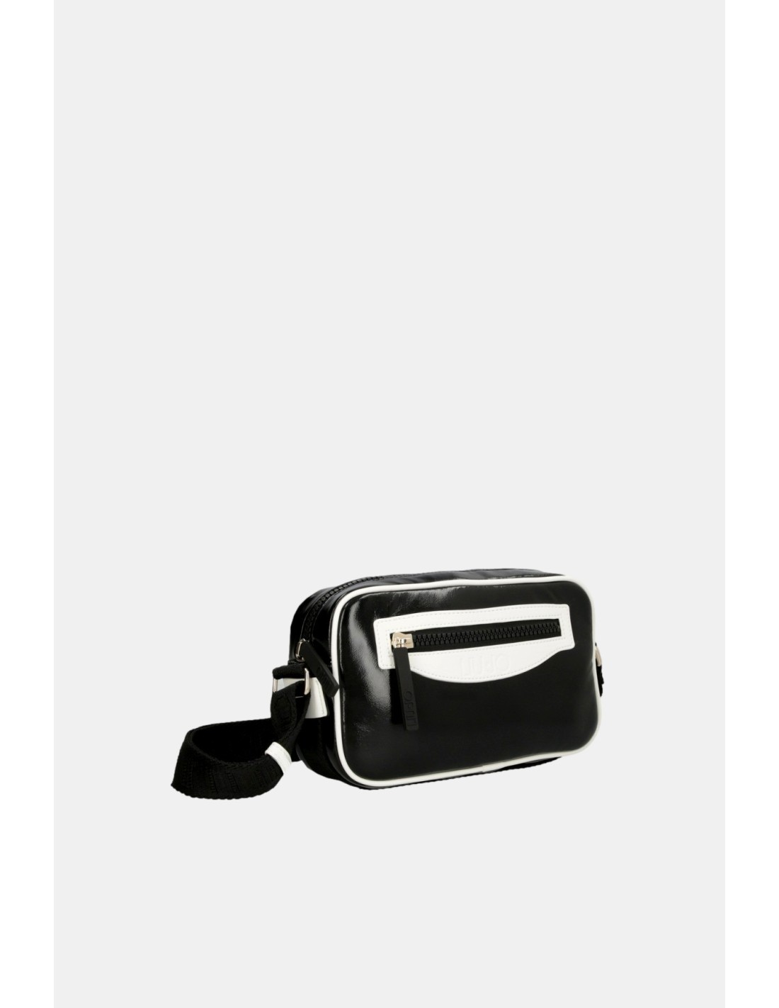 Saco médio com detalhes contrastantes,alça de ombro ajustável,bolso frontal com fecho,forro com logótipo.