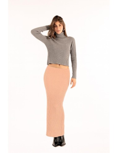 Kontatto assina uma longuete em malha canelada, corte justo e confortável que valoriza a silhueta sem apertar. Fio macio e stretch, textura compacta. Cintura elástica e fundo direito com ligeira fenda posterior para liberdade de movimentos. Perfeita do escritório ao aperitivo, também em coordenado.