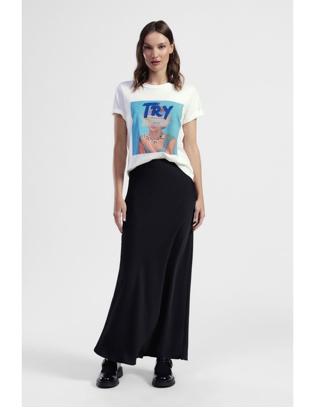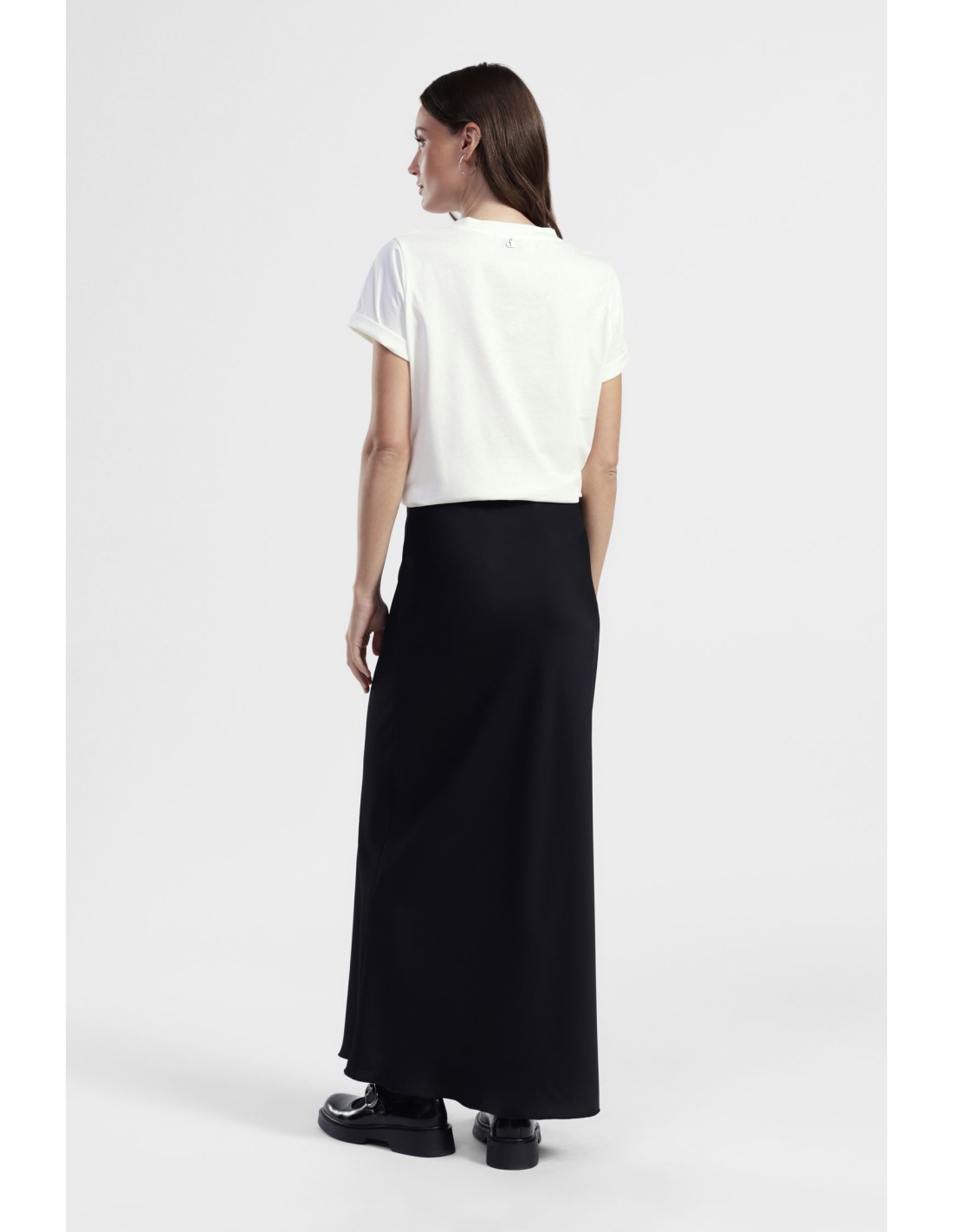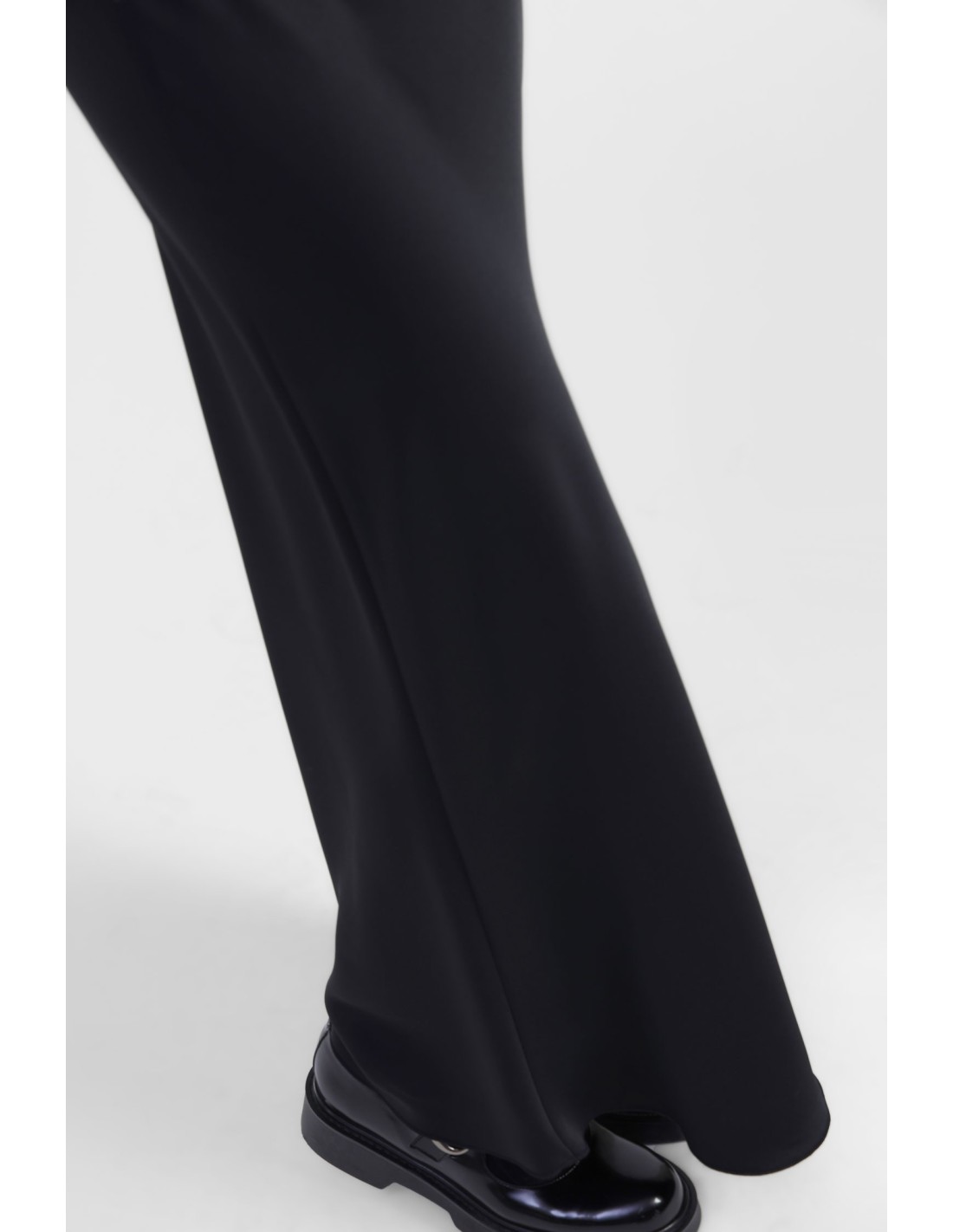 Deixe-se envolver pelo movimento fluido desta saia comprida larga de cintura subida: o seu corte minimalista combina facilmente tanto com t-shirts gráficas como com blusas delicadas. Ideal para todos os dias, proporciona conforto e estilo sem esforço, graças à sua linha suave que favorece a silhueta e acompanha levemente cada passo.