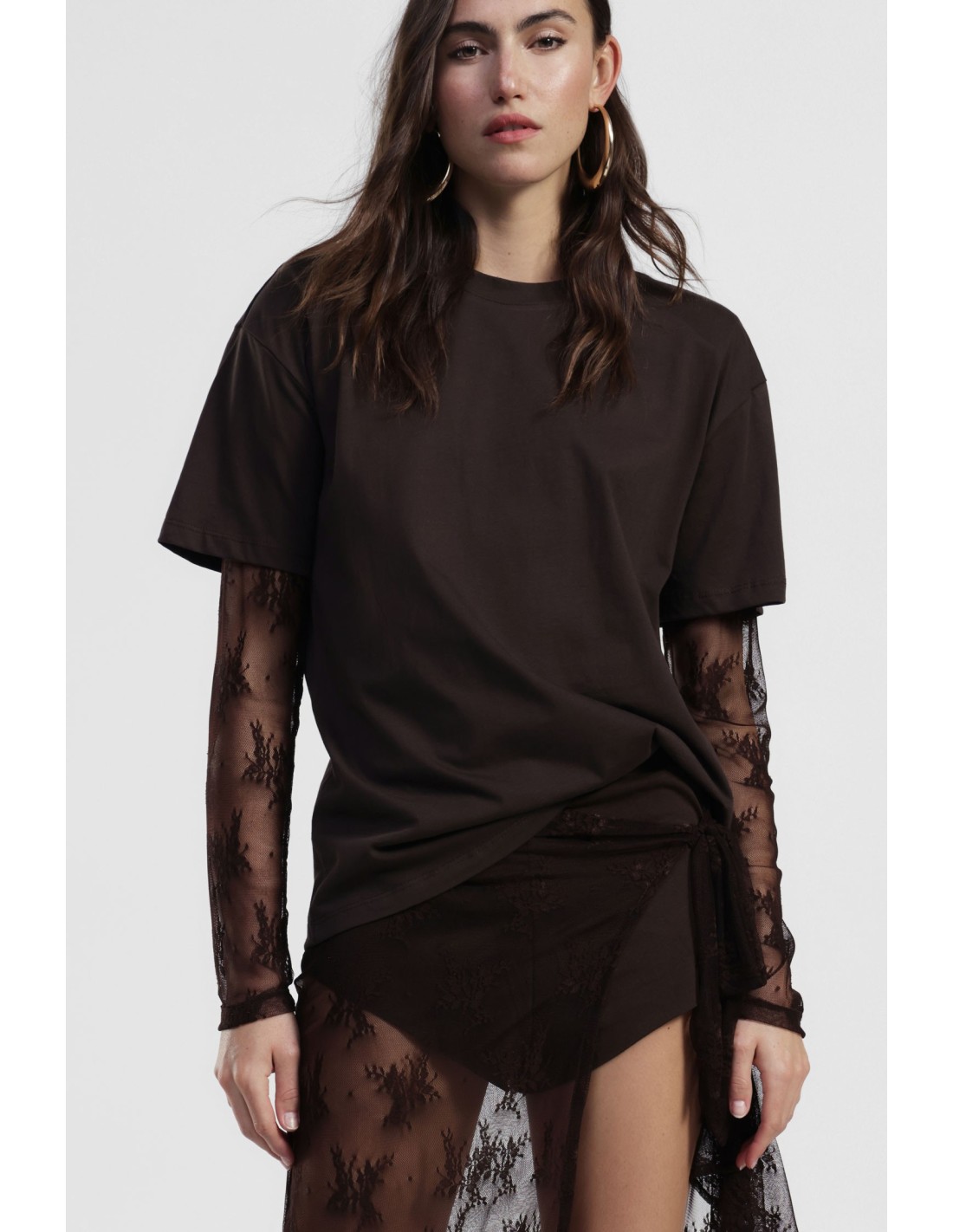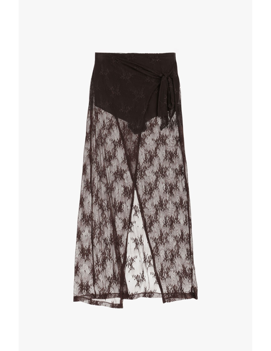 Deixe-se levar pelo charme desta saia comprida em renda transparente, que joga com linhas femininas e detalhes cuidadosos como o nó lateral na cintura. Perfeita para valorizar qualquer look, do quotidiano às ocasiões especiais, confere um toque requintado e original ao seu estilo pessoal.