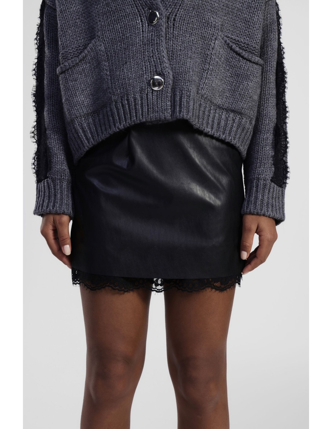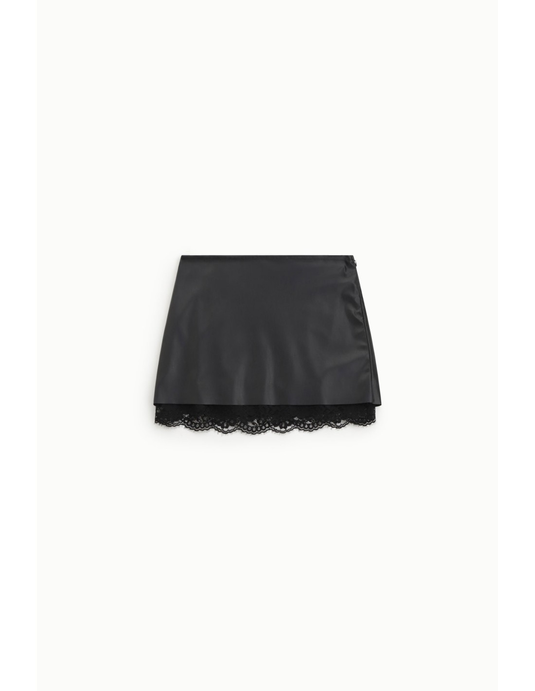 Saia curta com borda em renda e corte reto