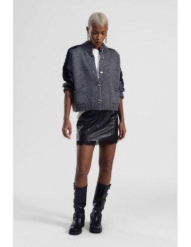 Saia curta com barra em renda e corte reto Dixie