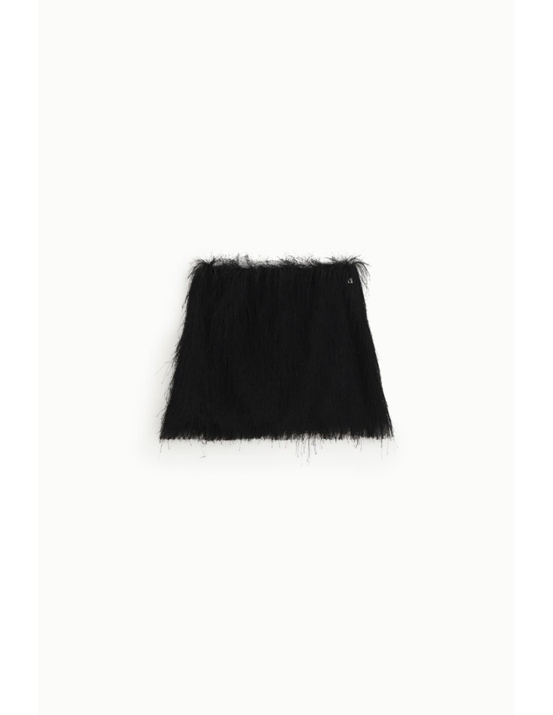 Esta saia curta de corte simples expressa personalidade graças às franjas efeito pelo que conferem movimento e originalidade a cada passo. Perfeita para adicionar um toque distintivo ao look do dia a dia, usa-se facilmente com malhas justas ou camisas para outfits que não passam despercebidos.