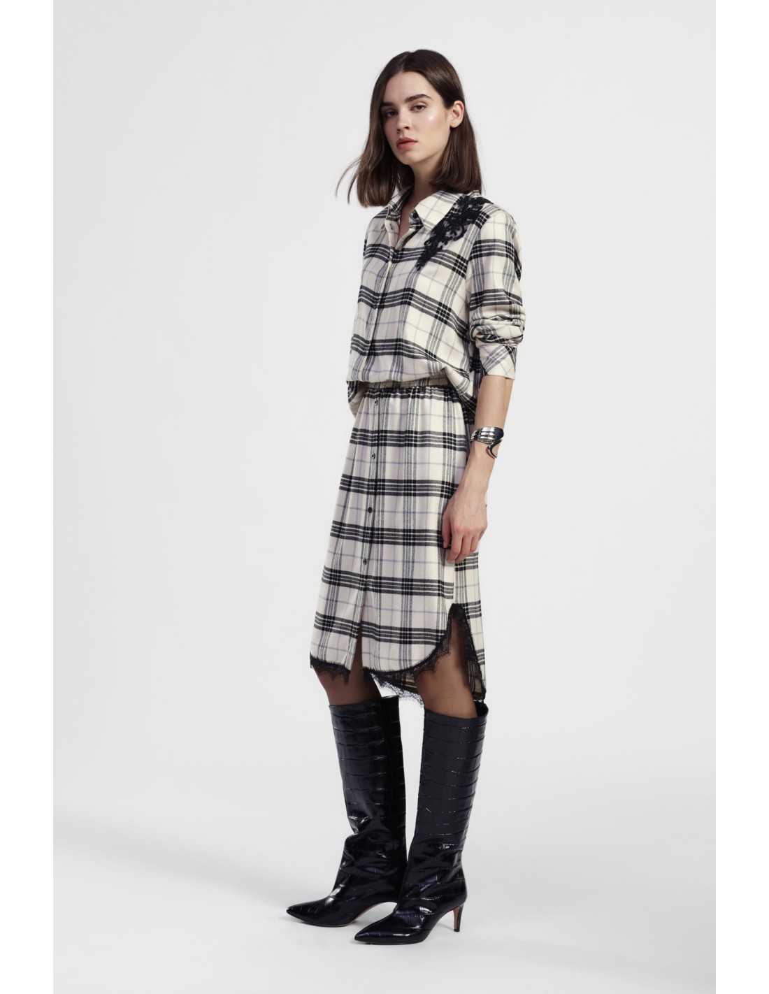 Saia Curta Em Xadrez Com Rebordo Em Renda Dixie