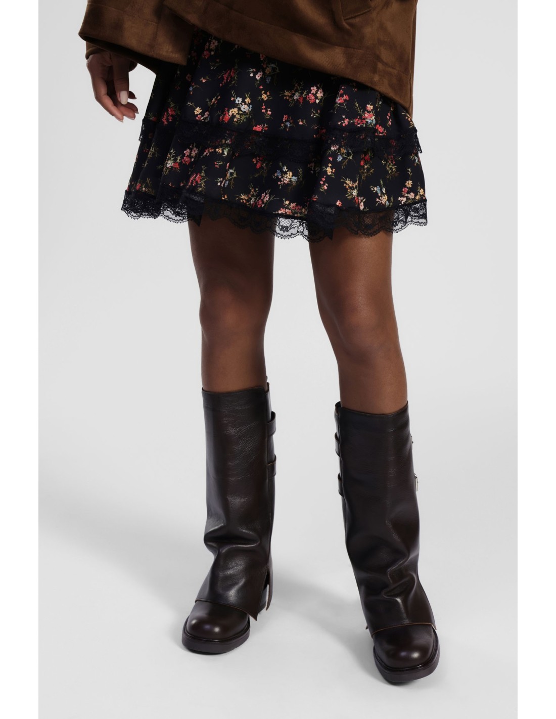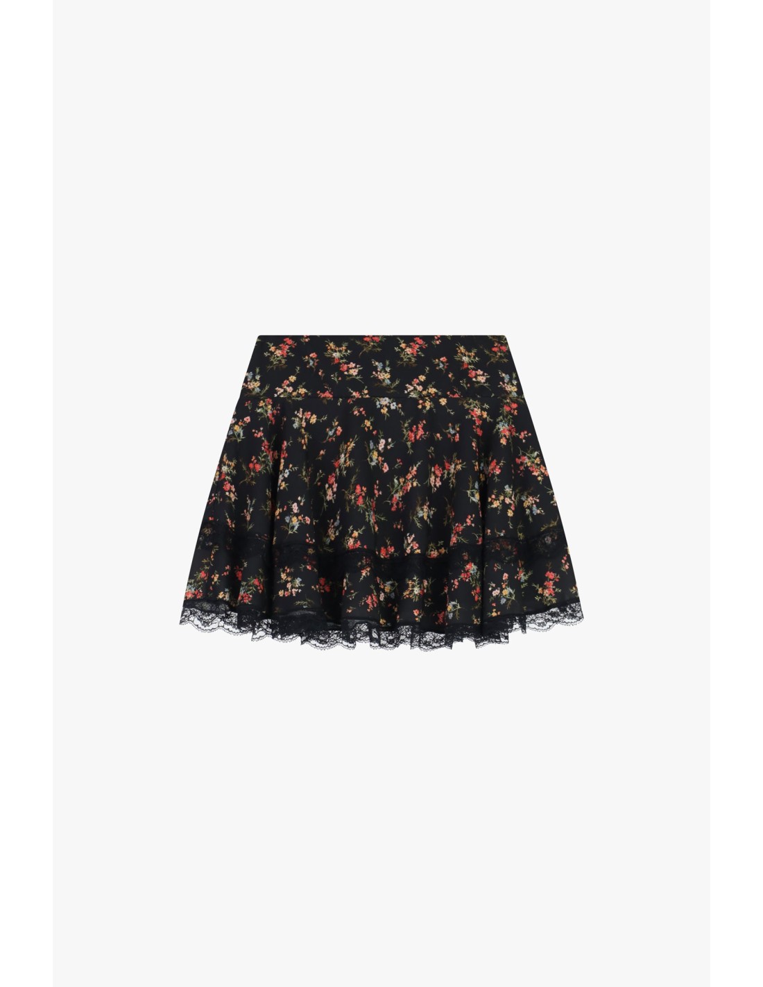 Saia Curta Floral Com Rebordo Em Renda Dixie
