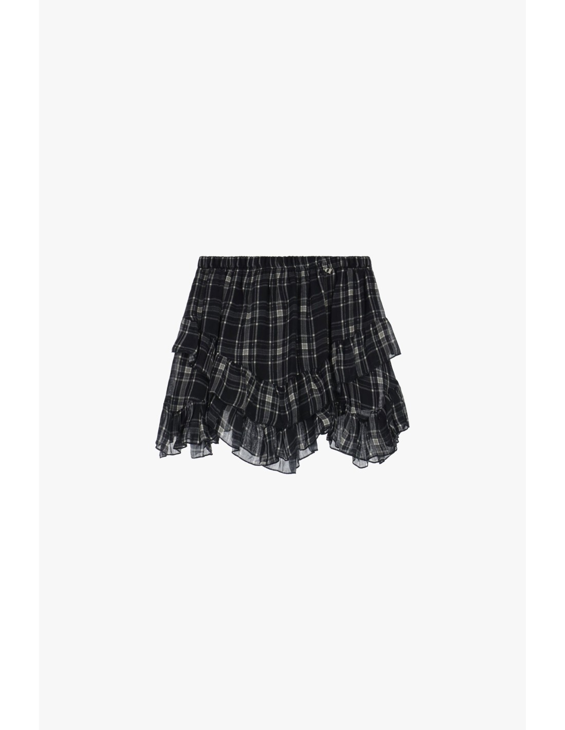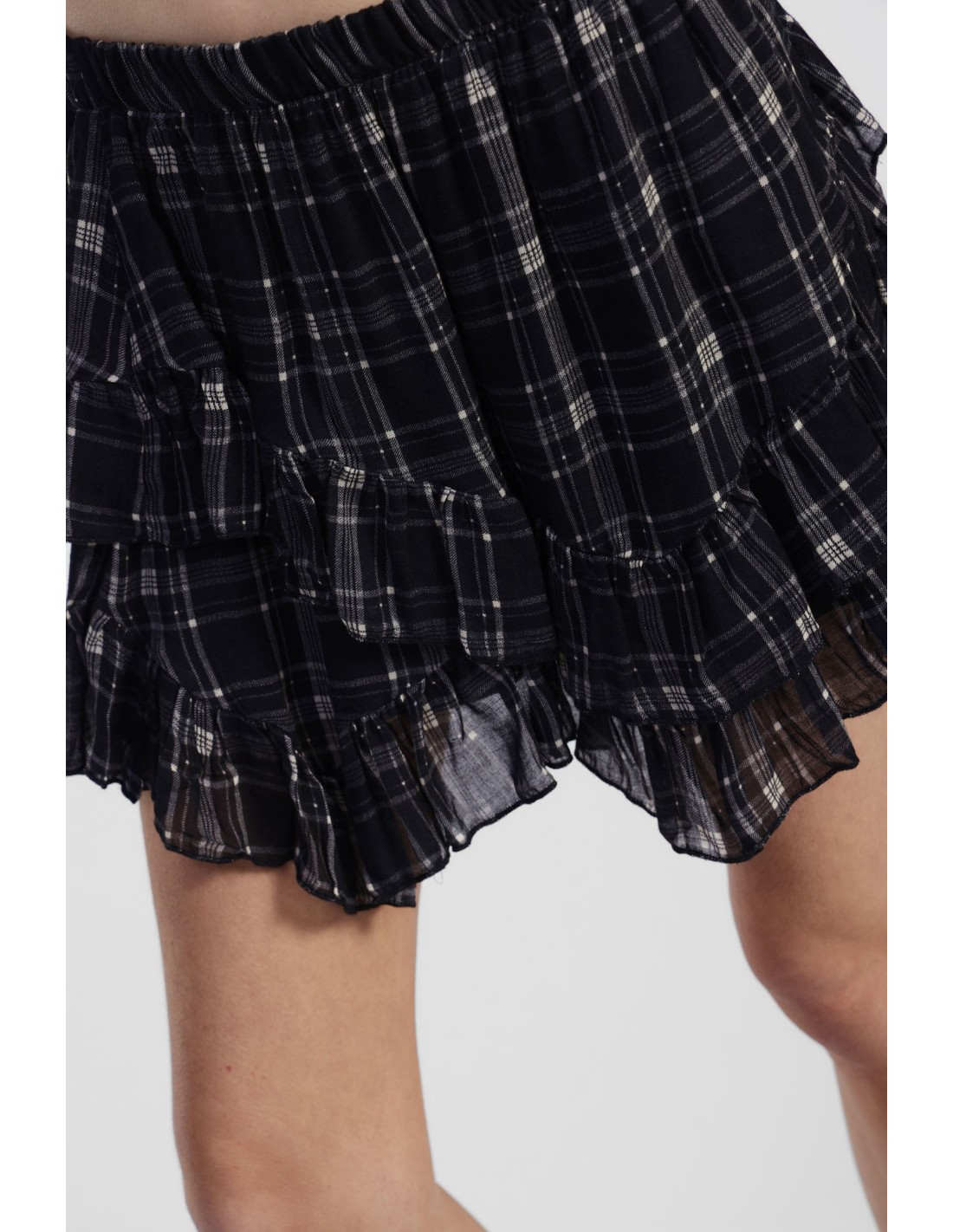 Saia Curta Xadrez Com Folhos Assimétricos Dixie