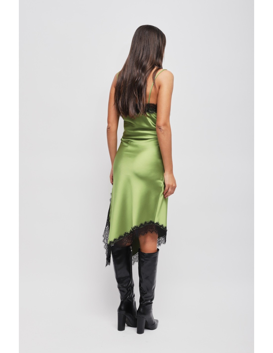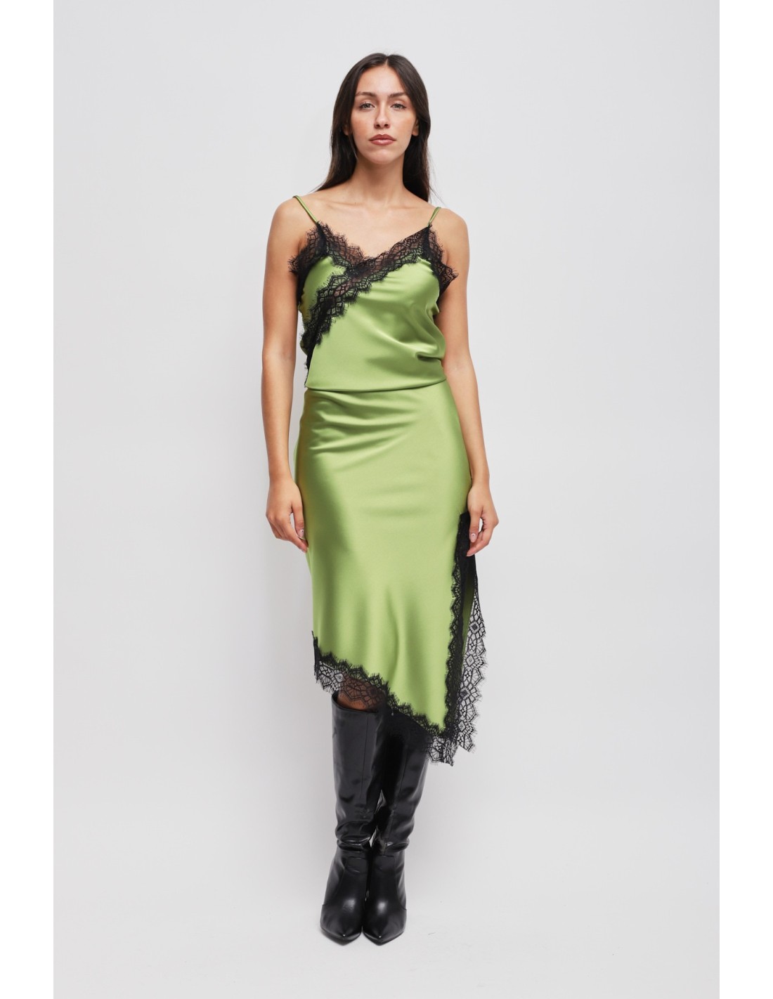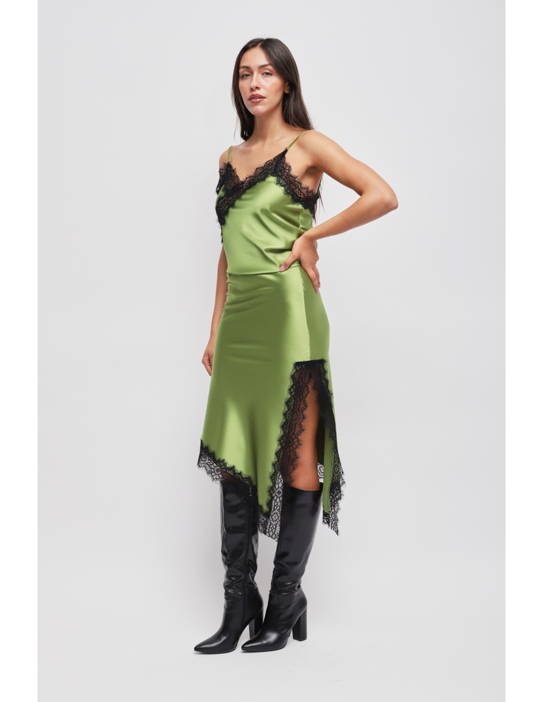 Saia em Cetim com Barra Assimétrica e Renda Maryley