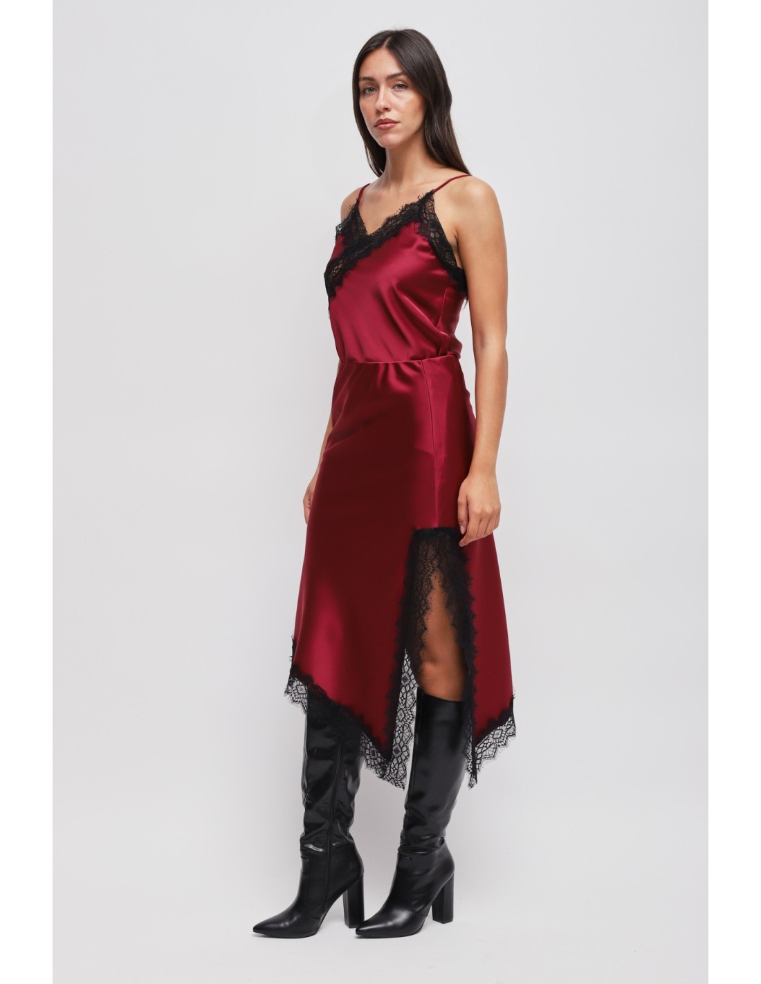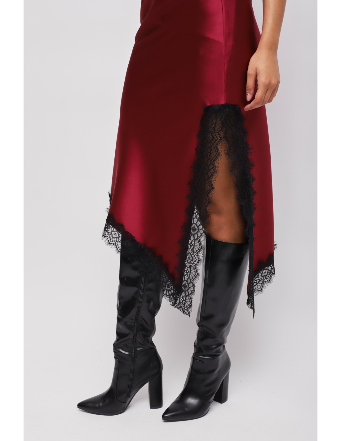Saia Em Cetim Com Barra Assimétrica E Renda Maryley