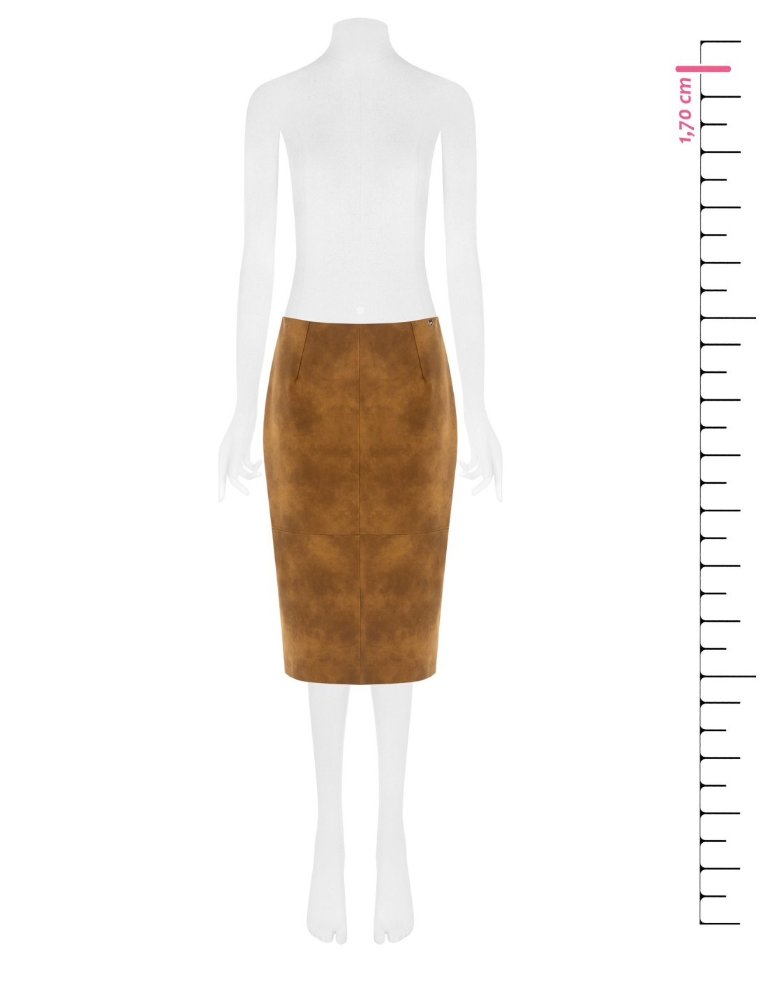 Rinascimento assina uma saia justa de cintura média: silhueta limpa que valoriza as curvas sem apertar. Efeito camurça macio e toque aveludado, com cortes de alfaiataria e fenda traseira para liberdade de movimento. Perfeita do escritório ao aperitivo, combina com camisas fluidas ou camisolas justas para looks versáteis.