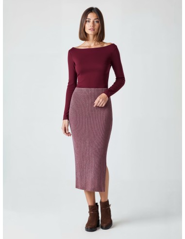 Saia Lápis Em Tecido Gofrado Canelado Com Fenda Lateral Rinascimento