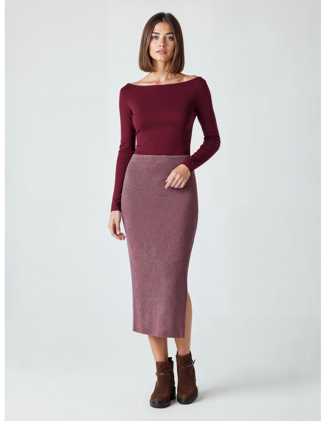 Saia lápis em tecido gofrado canelado com fenda lateral Rinascimento
