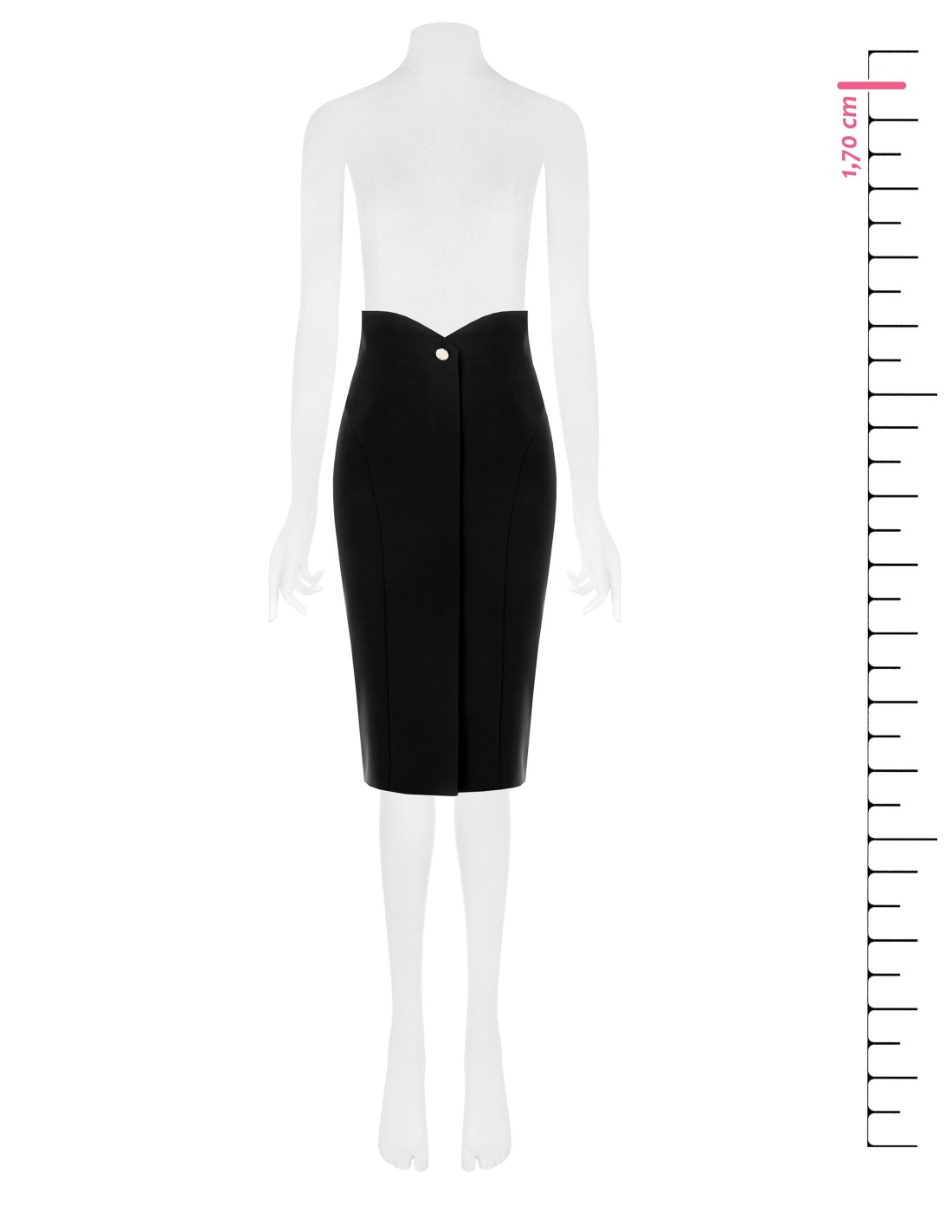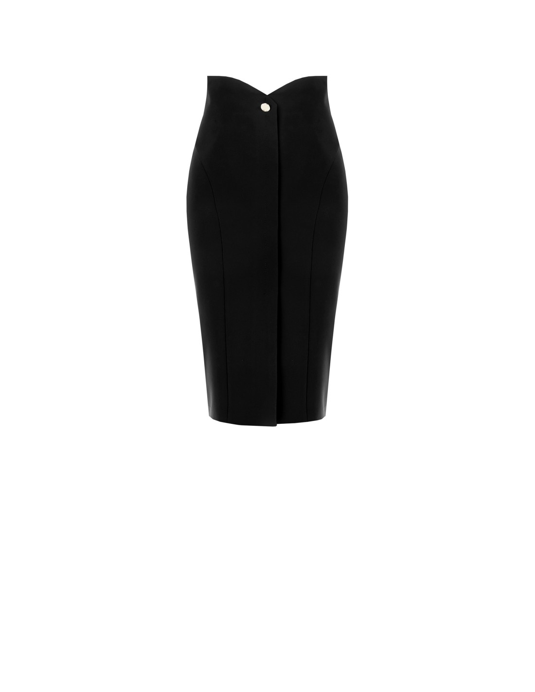 Rinascimento assina uma saia midi de corte justo que modela a cintura alta e alonga a silhueta. Confeccionada em tecido técnico elástico com efeito alisador, oferece conforto em movimento. Detalhes chave: fenda frontal e cintura em V com botão joia. Perfeita para escritório e after-work.