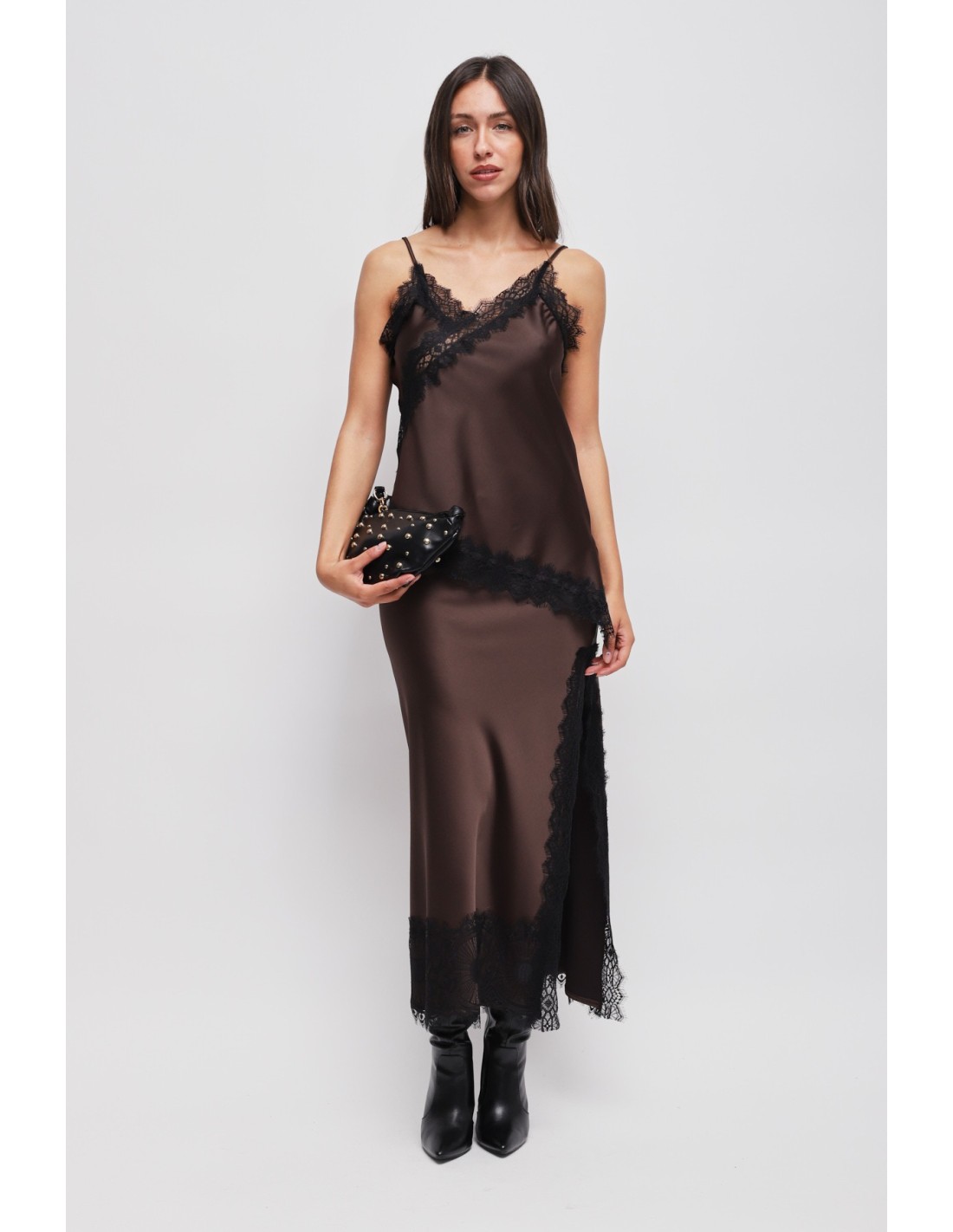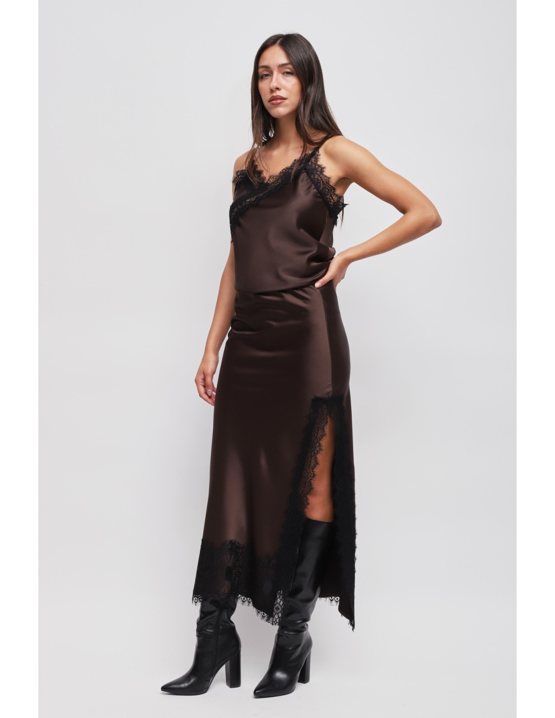 Saia longa em cetim com renda Maryley