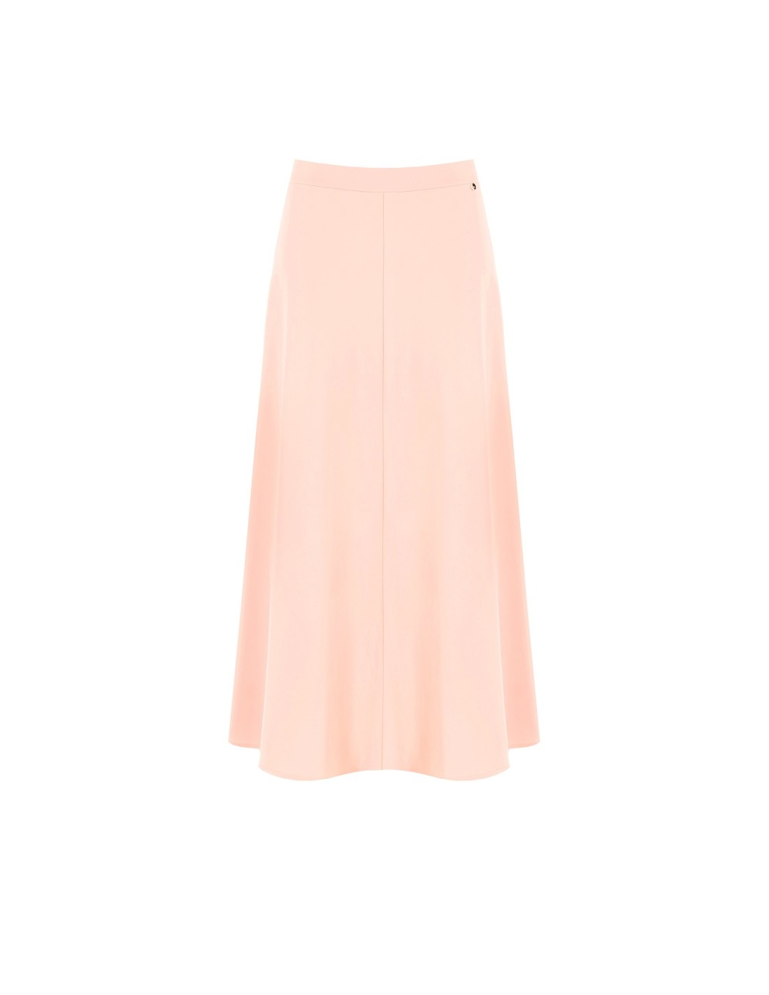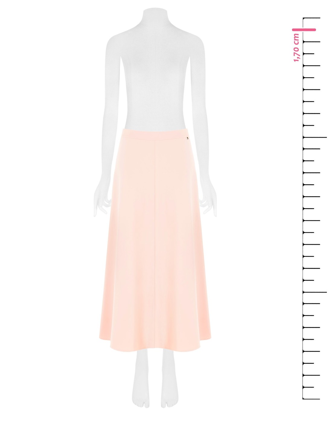 Midi de corte evasé, acaricia a silhueta com um tecido fluido e de textura lisa, para um conforto leve e um movimento harmonioso. A cintura limpa e o fecho de correr na parte de trás, completados pelo pequeno detalhe do logo, tornam-na perfeita do escritório ao aperitivo.