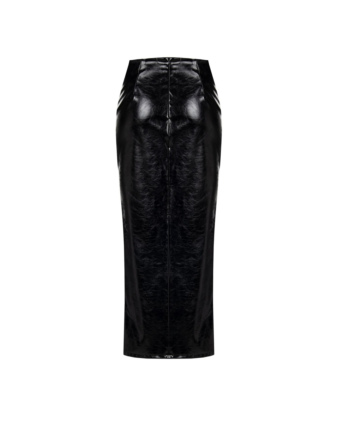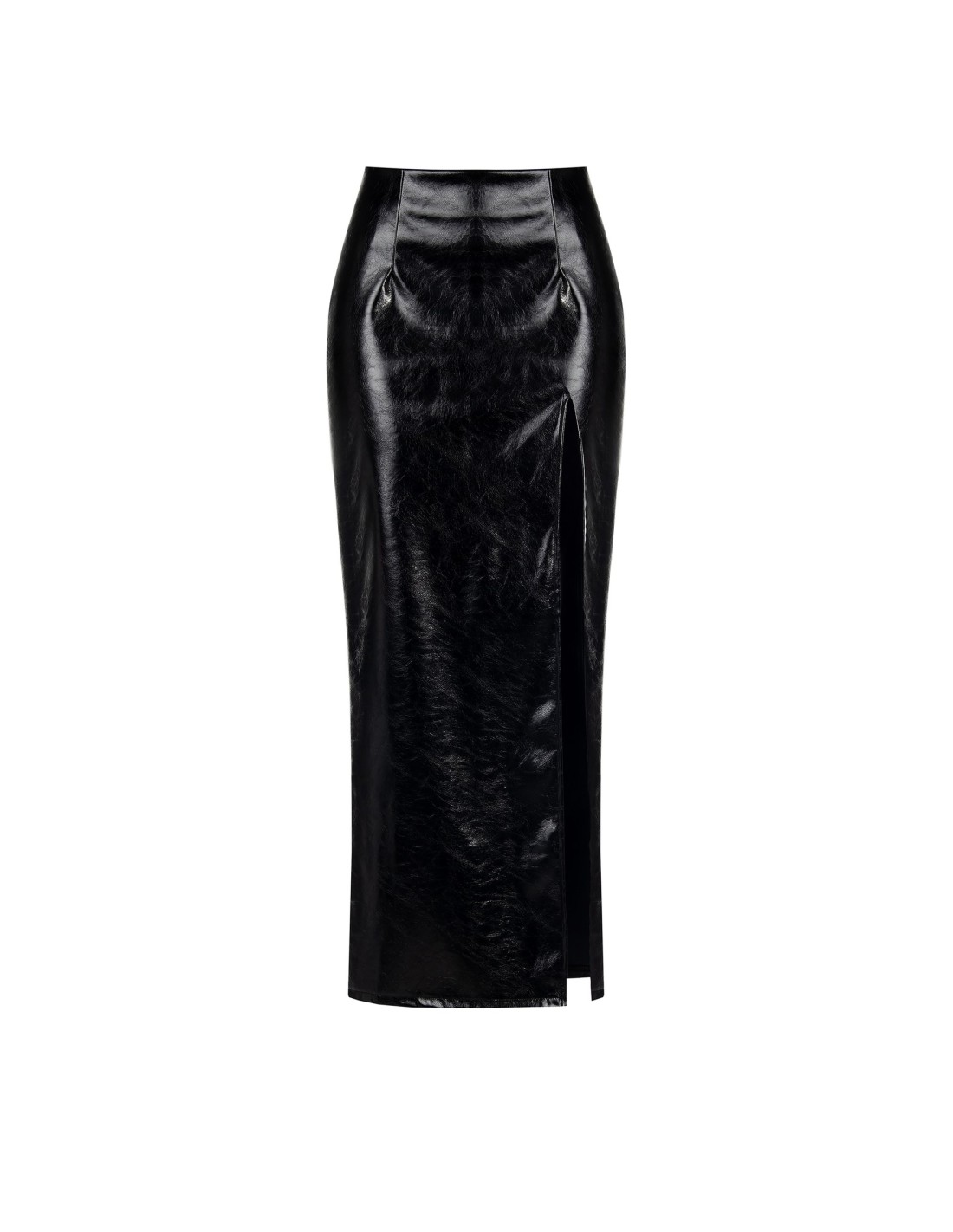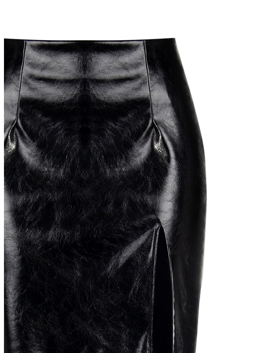 Saia Longuete De Pele Sintética Em Verniz Com Fenda Profunda Rinascimento