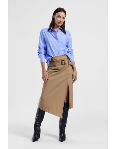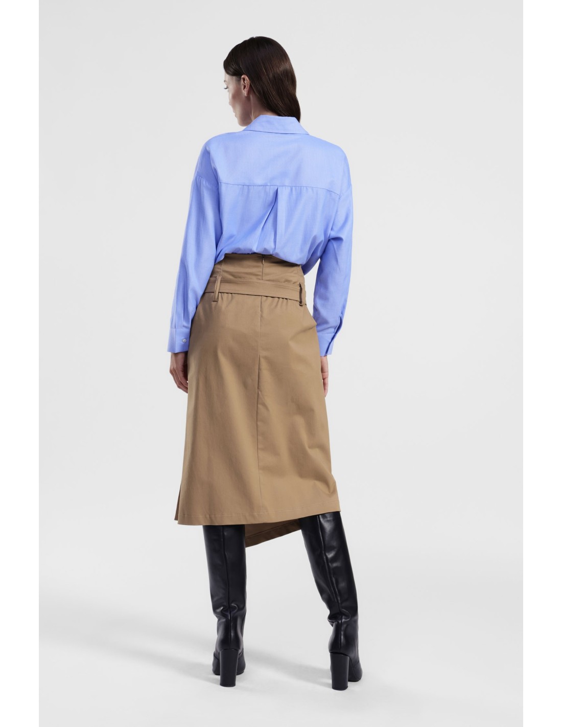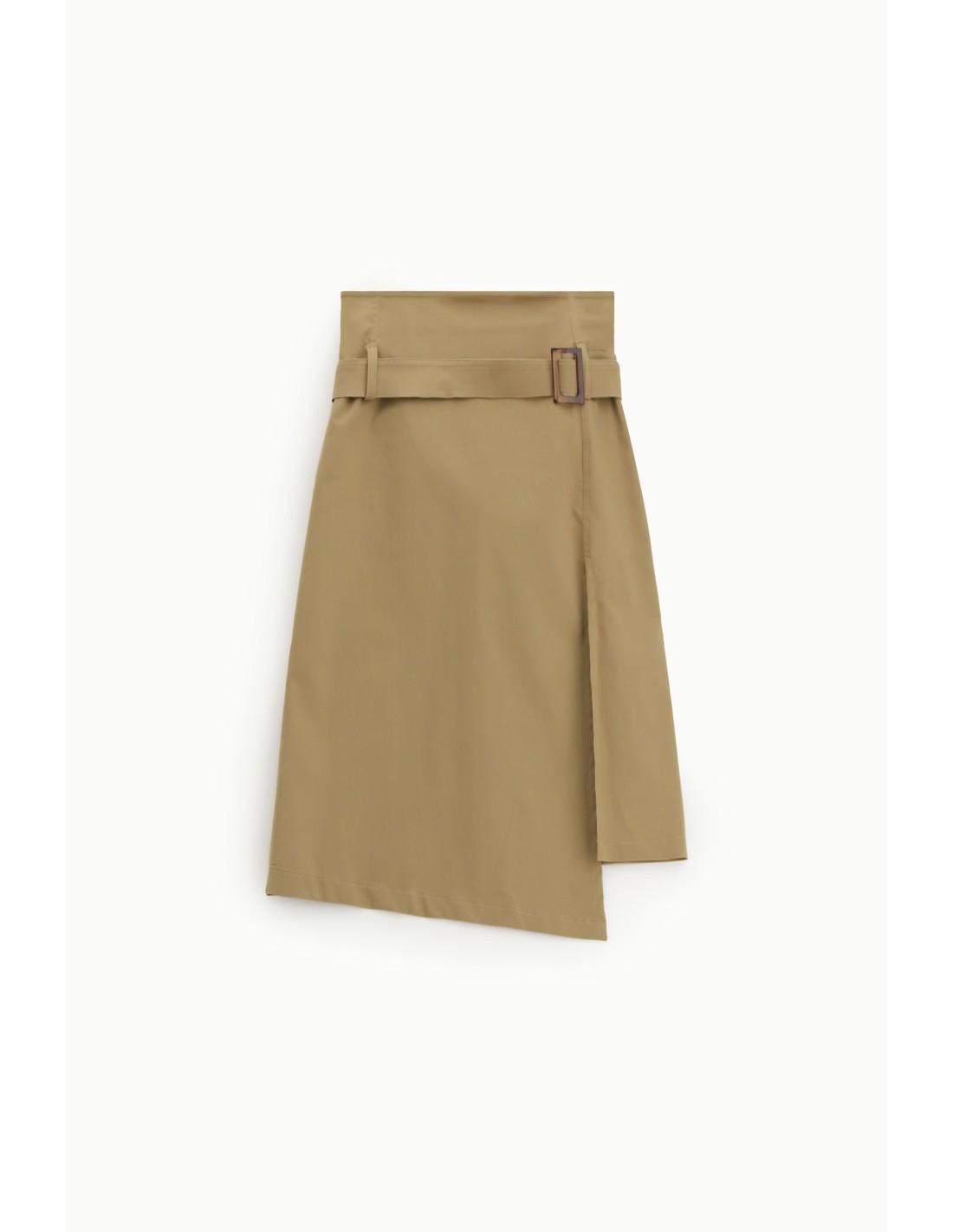 Um toque original graças à linha assimétrica e ao cinto com fivela que realça a cintura. A fenda lateral oferece liberdade de movimentos e um detalhe distintivo perfeito para o dia a dia, da secretária à hora do cocktail. Use-o com botas para um look fresco e arrojado.