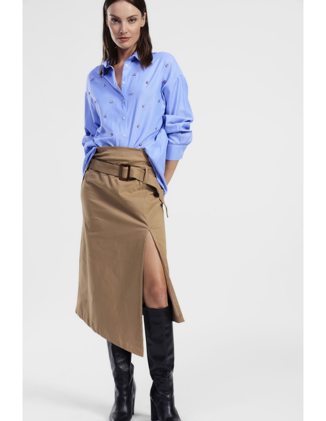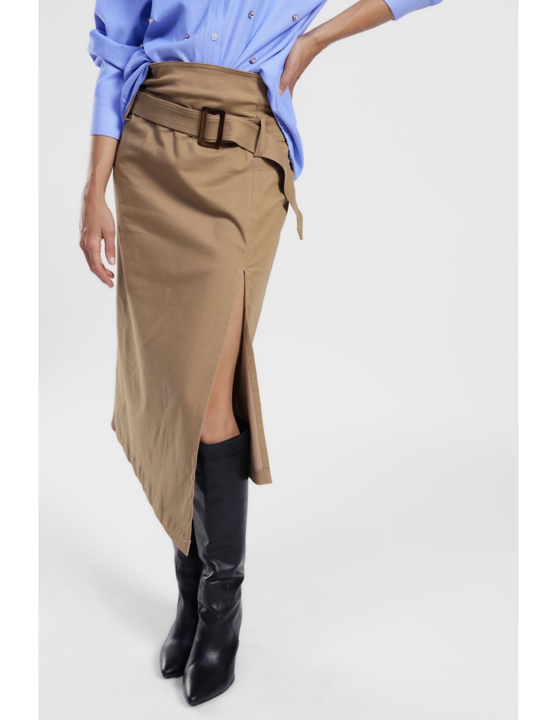 Saia Midi Assimétrica Com Fenda E Cinto Dixie