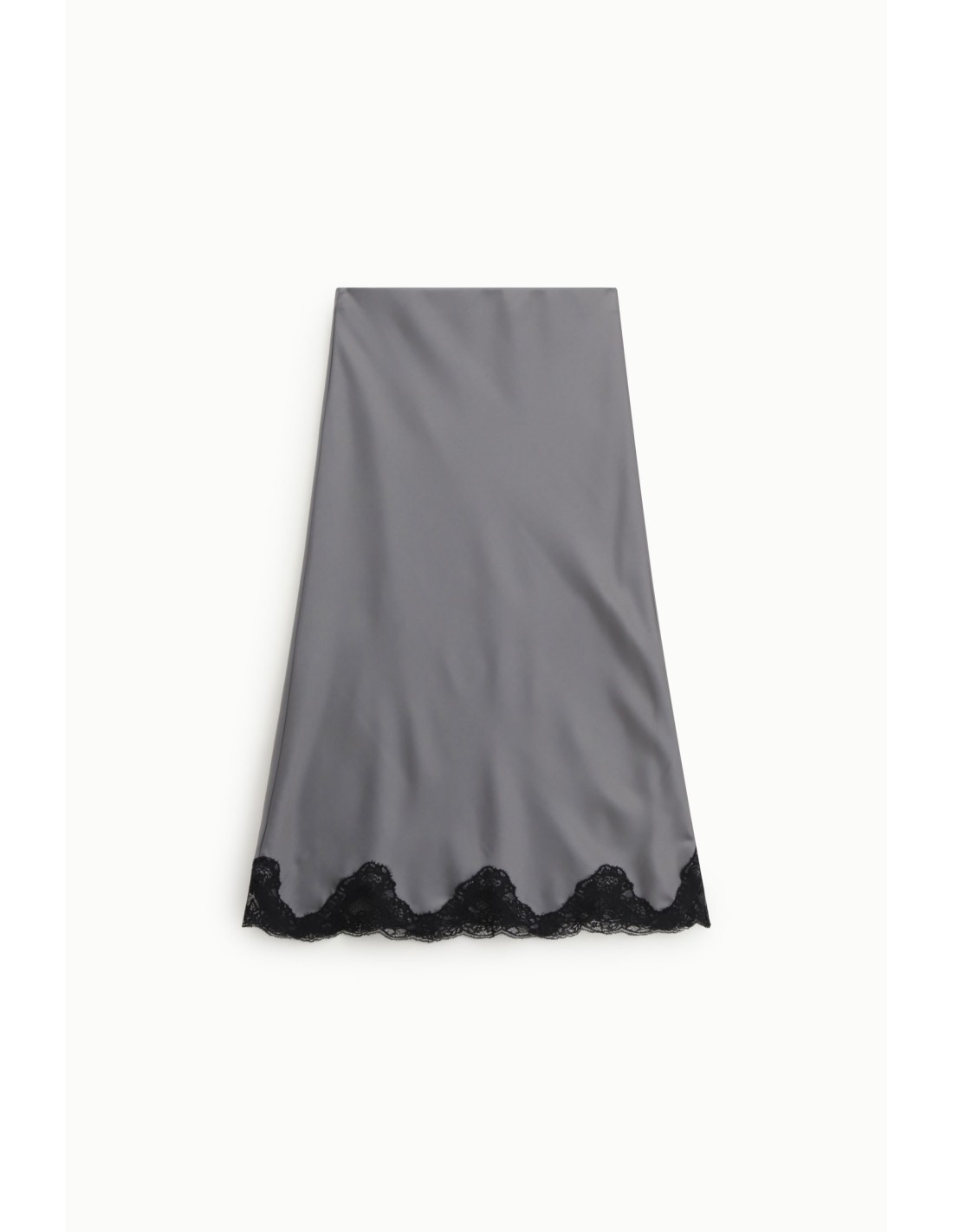 Deixe-se conquistar por uma saia midi de corte suave, enriquecida por uma borda em renda que confere personalidade e sofisticação ao look do dia a dia. A silhueta ligeiramente evasée facilita os movimentos e torna esta peça perfeita tanto com uma camisola simples para o dia como com acessórios especiais para as noites especiais.