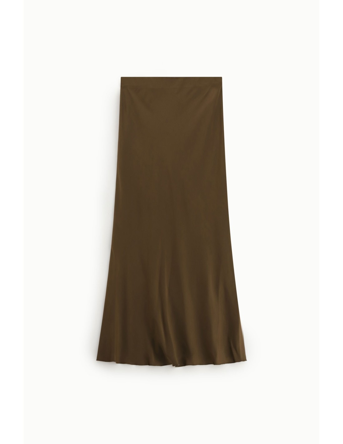 Linhas largas que acompanham os seus movimentos com leveza e um corte simples: esta saia midi é a peça certa para dar personalidade ao seu look do dia a dia. Confortável para qualquer ocasião graças à sua cintura lisa e ao fundo ligeiramente ondulado, oferece versatilidade tanto com sapatilhas como com sandálias.
