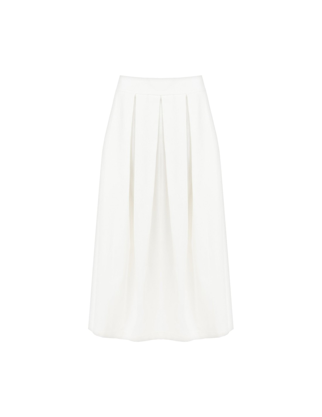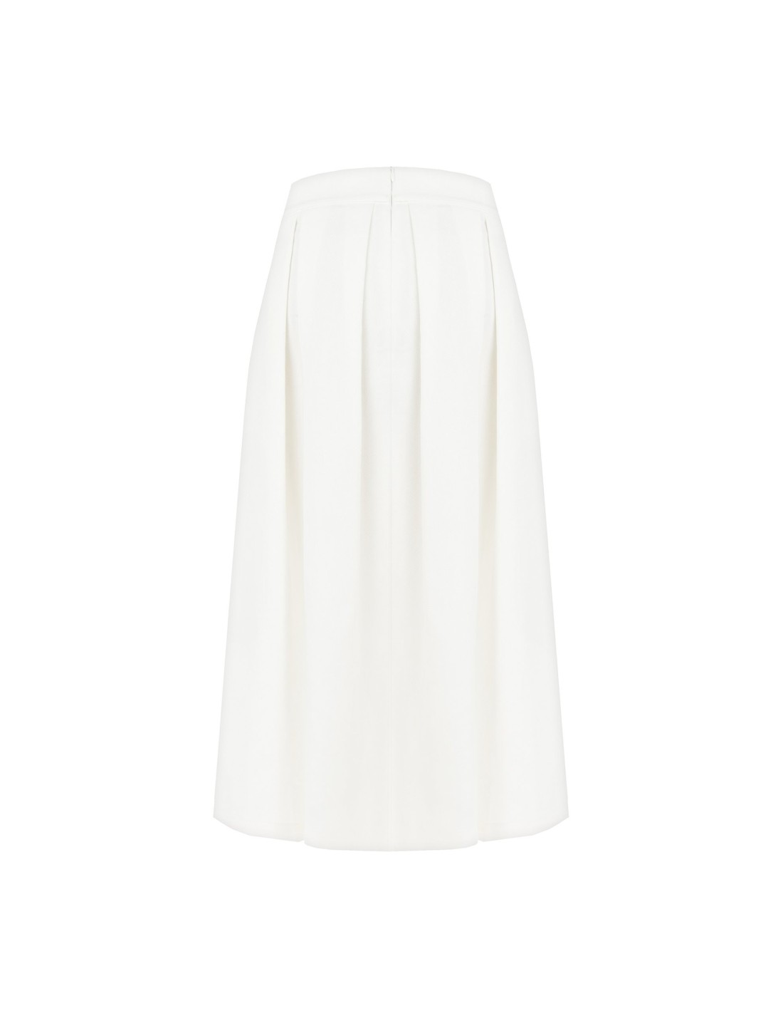 Feminina e versátil, esta saia de corte midi e caimento evasé valoriza a silhueta com naturalidade. O denim de textura compacta garante conforto e firmeza, enquanto as pregas frontais e a cintura alta definem a cintura. Perfeita do escritório ao tempo livre com estilo.