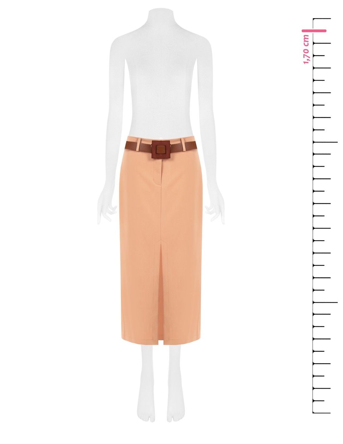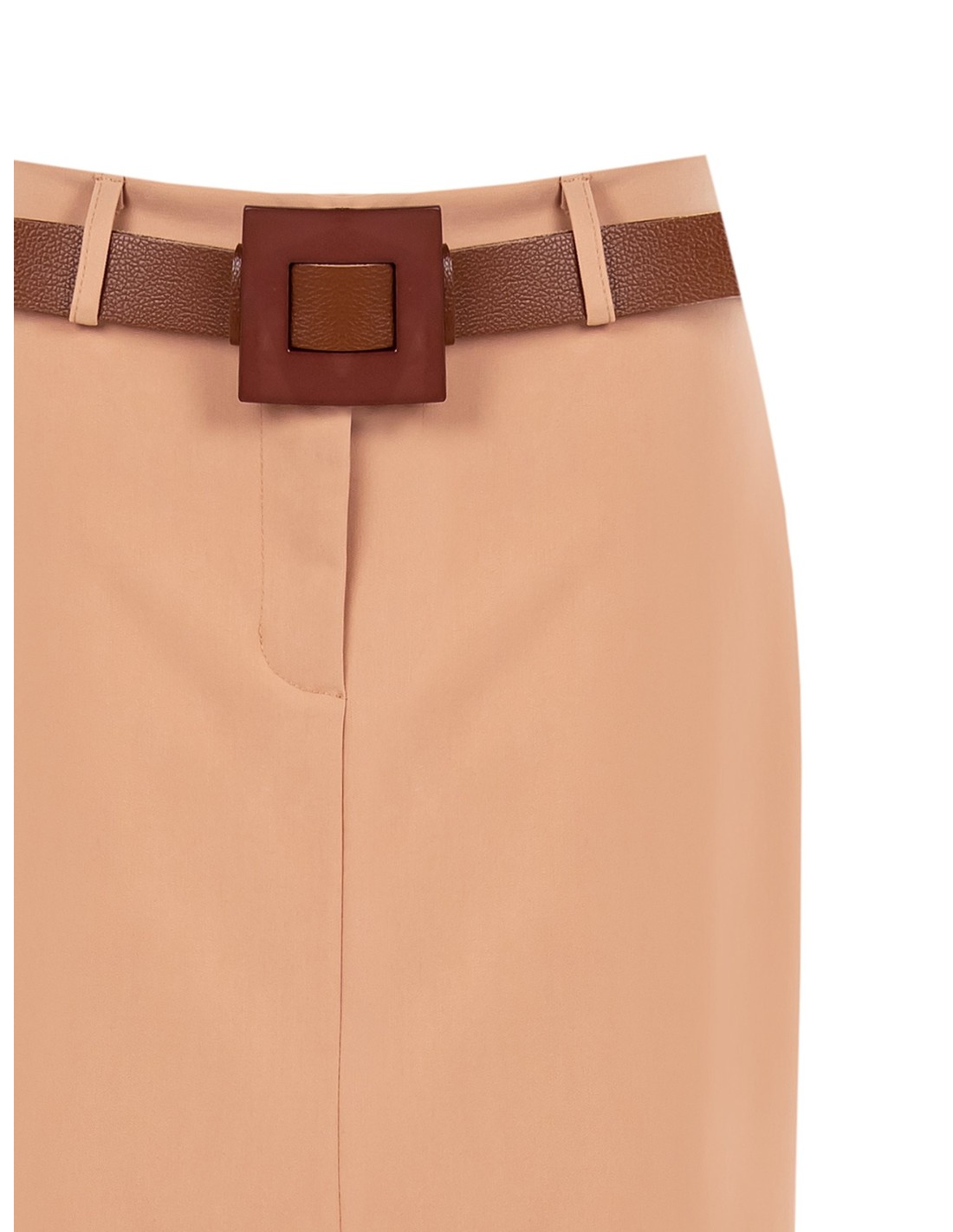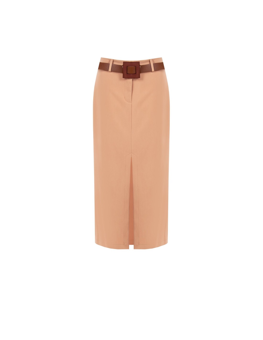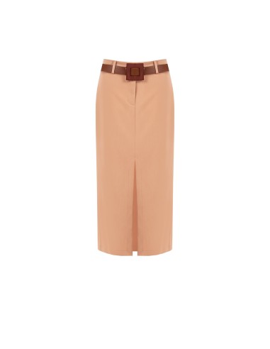 Linha midi com um corte justo mas confortável graças ao tecido compacto e ligeiramente elástico. O cinto com fivela maxi realça a cintura, enquanto a fenda frontal garante liberdade de movimentos e uma silhueta esguia. Perfeito do escritório ao cocktail, com blazer ou top essencial.