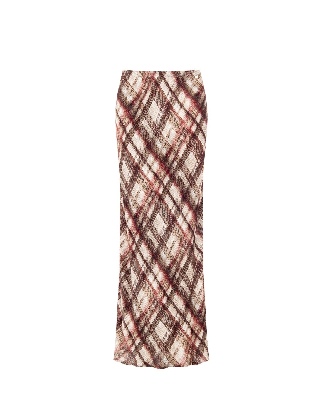 Longuette solta que acompanha a silhueta sem marcar. Tecido fluido e ligeiramente estruturado com padrão gráfico, confortável durante todo o dia. Cintura regular, corte largo na parte inferior e pequeno pingente de metal na lateral. Perfeito com uma blusa para o escritório ou com um top e sandálias para um aperitivo.