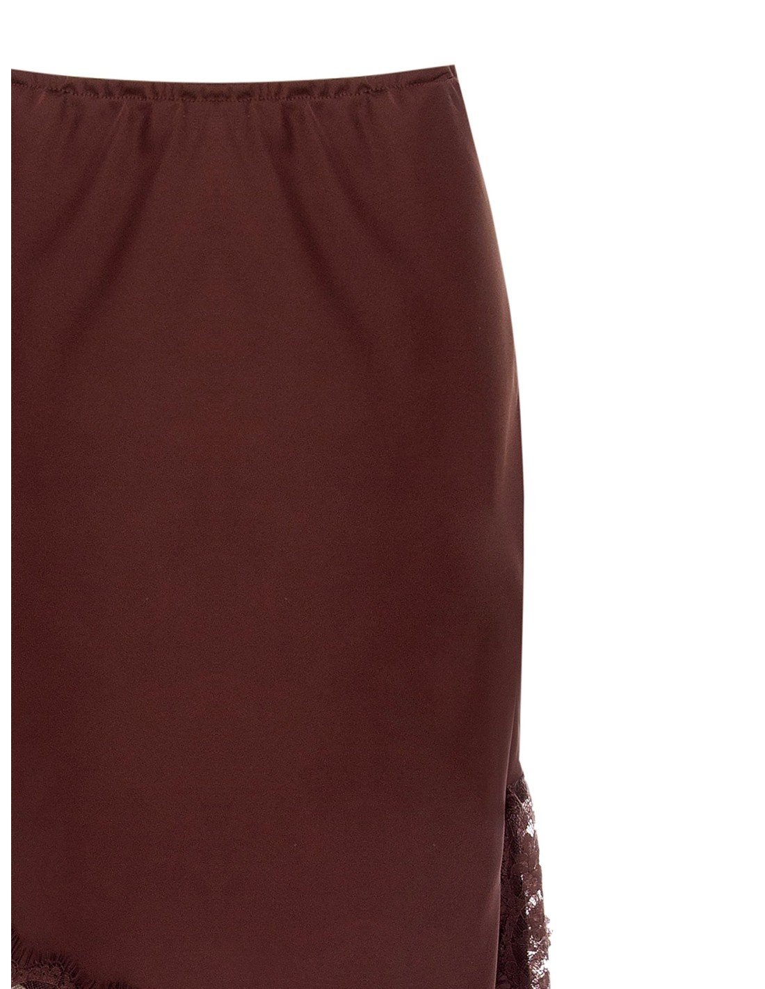 Rinascimento aposta na feminilidade essencial: saia midi de corte justo mas confortável, em cetim fluido com ligeiro stretch. Barra assimétrica rematada em renda revela a perna com delicadeza; cintura elástica para um ajuste prático. Perfeita para o escritório com blazer, irresistível para um aperitivo e festas com um top minimal.