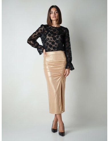 Saia Tubinho Franzida Em Malha Laminada Rinascimento