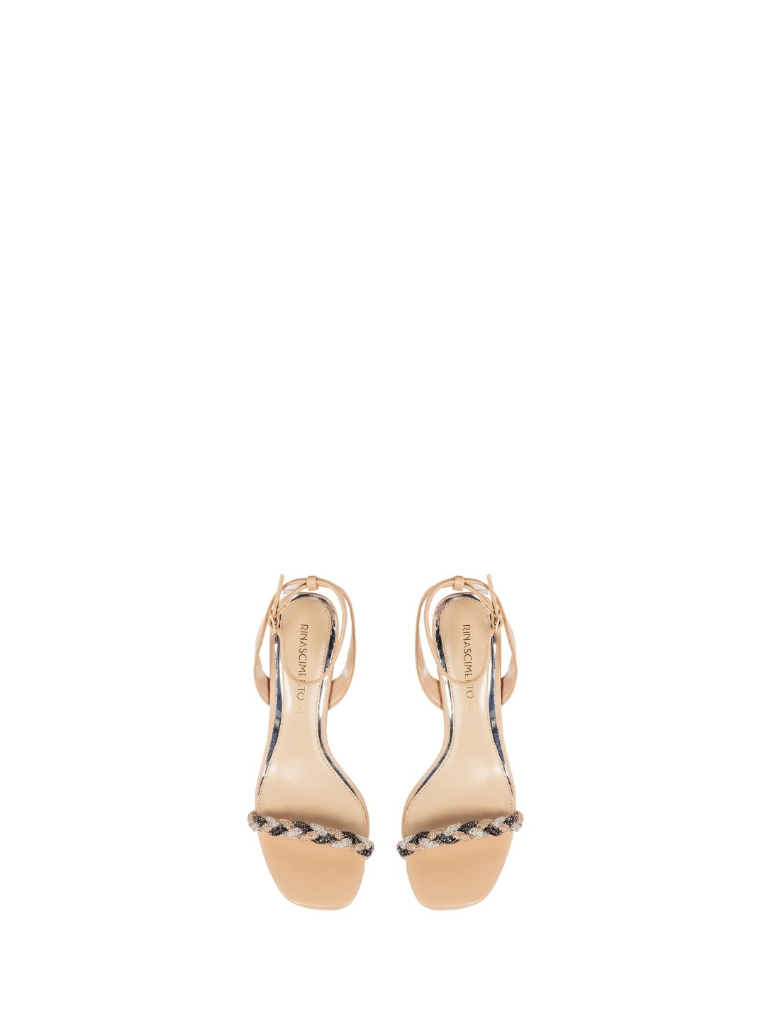 Sandálias De Salto Médio Com Tira Trançada Em Strass Rinascimento