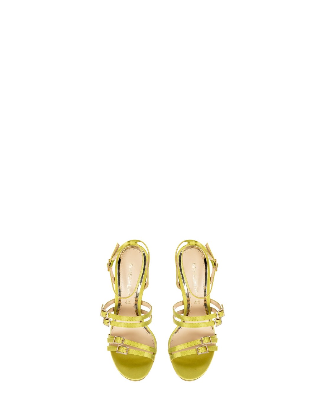 Sandálias Em Cetim Com Salto Alto E Fivelas Em Strass Rinascimento