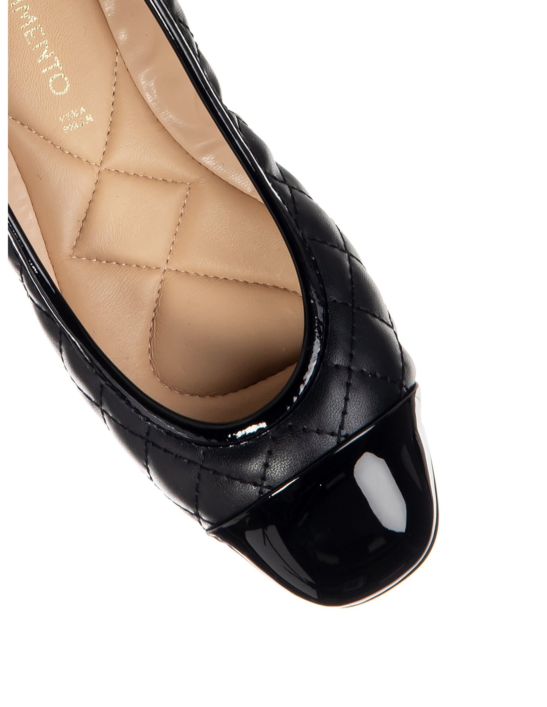 Bailarina com ajuste confortável e afunilado. Parte superior em pele sintética acolchoada com biqueira em verniz e palmilha acolchoada para suporte diário. Tornozeleira metálica com pendente removível e fecho de correr traseiro para um calce prático. Perfeita do escritório ao aperitivo, acrescenta classe sem renunciar ao conforto.