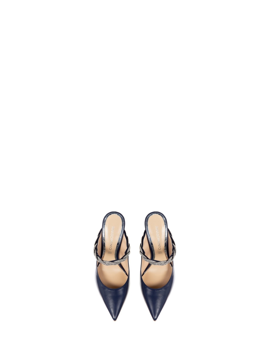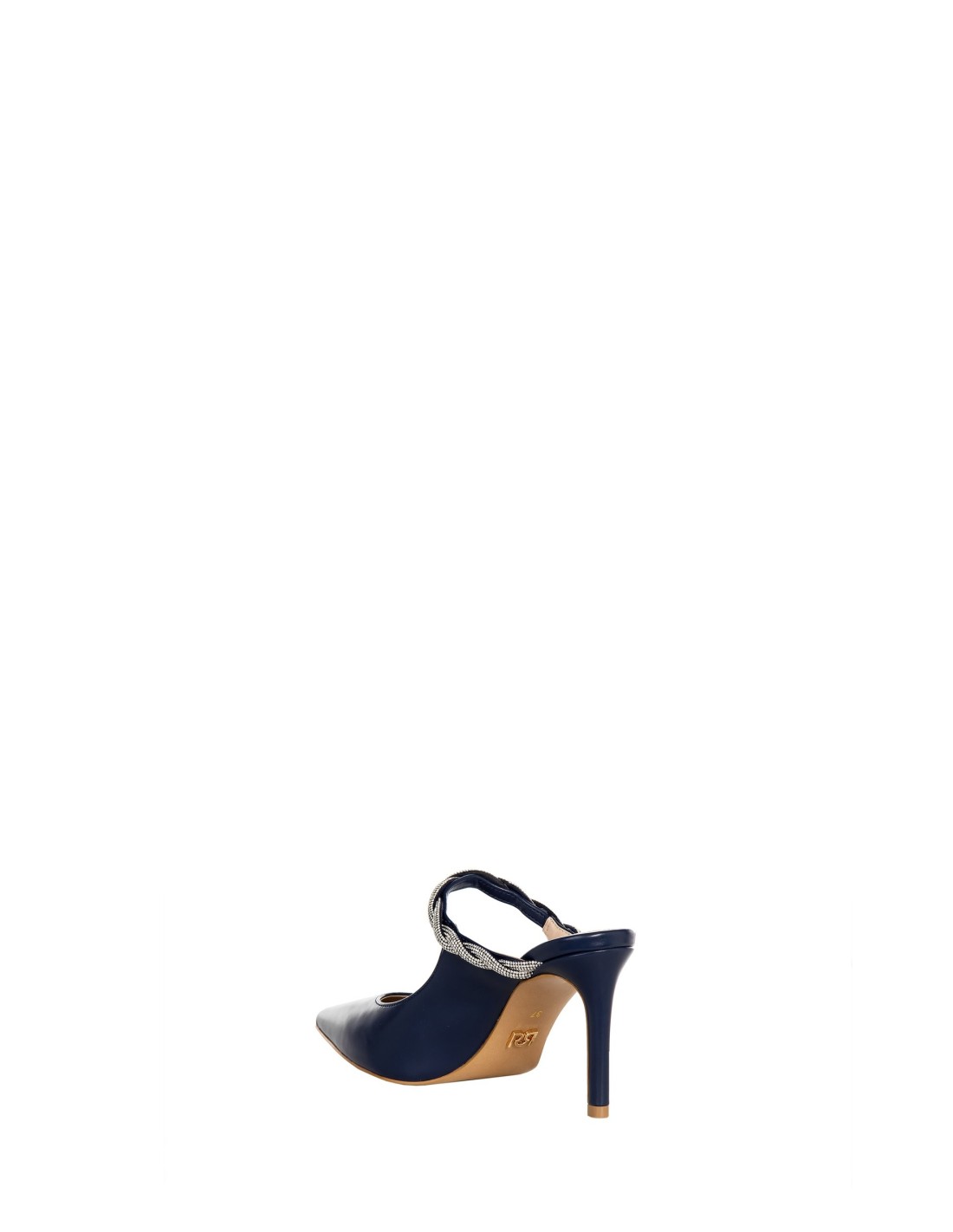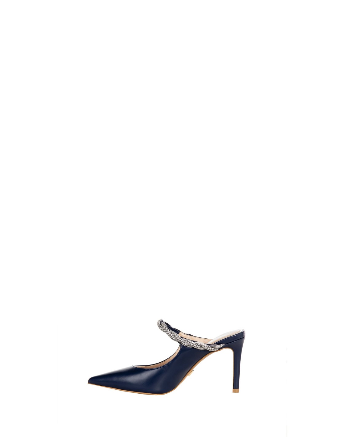 Slingback de salto alto de silhueta afilada, em pele lisa com acabamento macio. A ponta fina alonga a silhueta, enquanto a tira-joia trançada confere brilho e estabilidade. Perfeita para festas, cerimónias ou para elevar com elegância looks de noite.