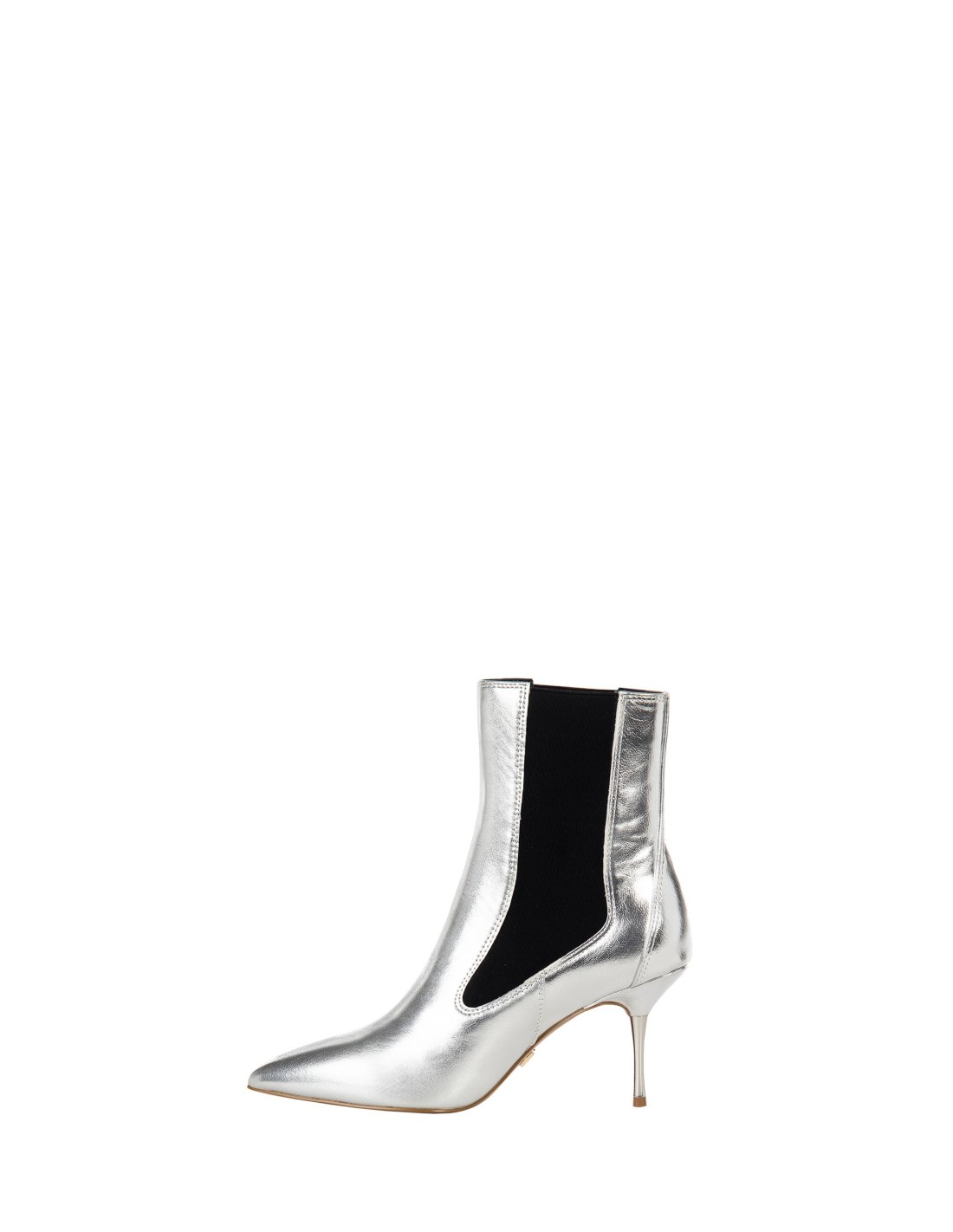 Botim com corte afunilado que alonga a silhueta com elegância, confeccionado em material efeito pele com textura luminosa e macia. Biqueira marcada, salto fino e elásticos laterais garantem conforto e um calce prático. Perfeito para festas, jantares e looks de noite.