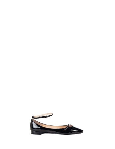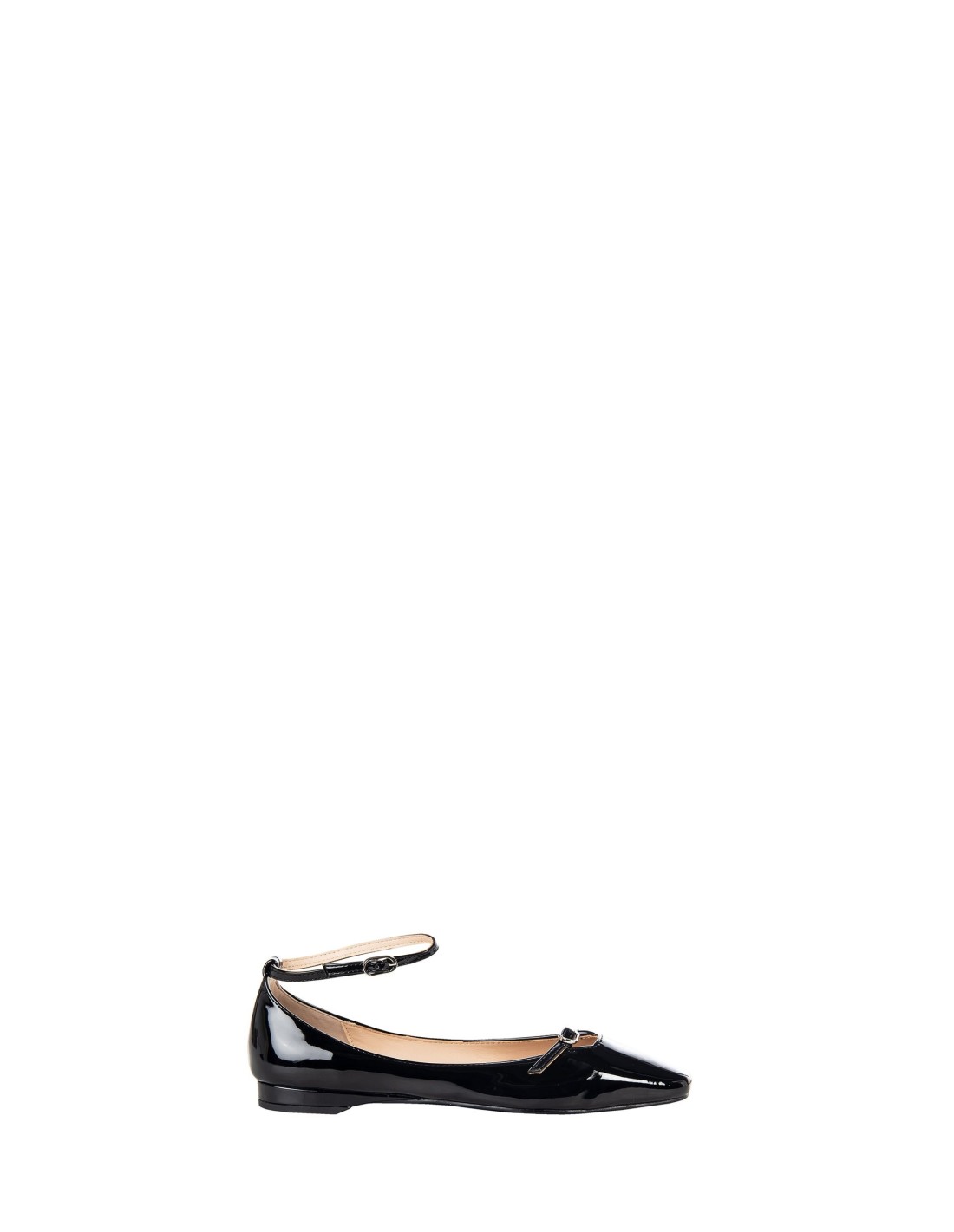 Ballet Flats em Pele Patinada Polida com Tira no Tornozelo