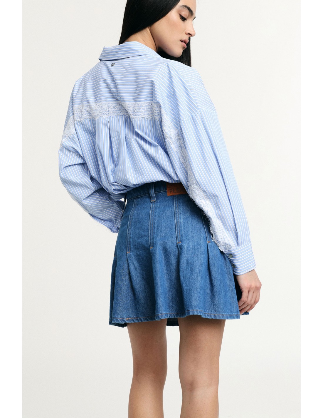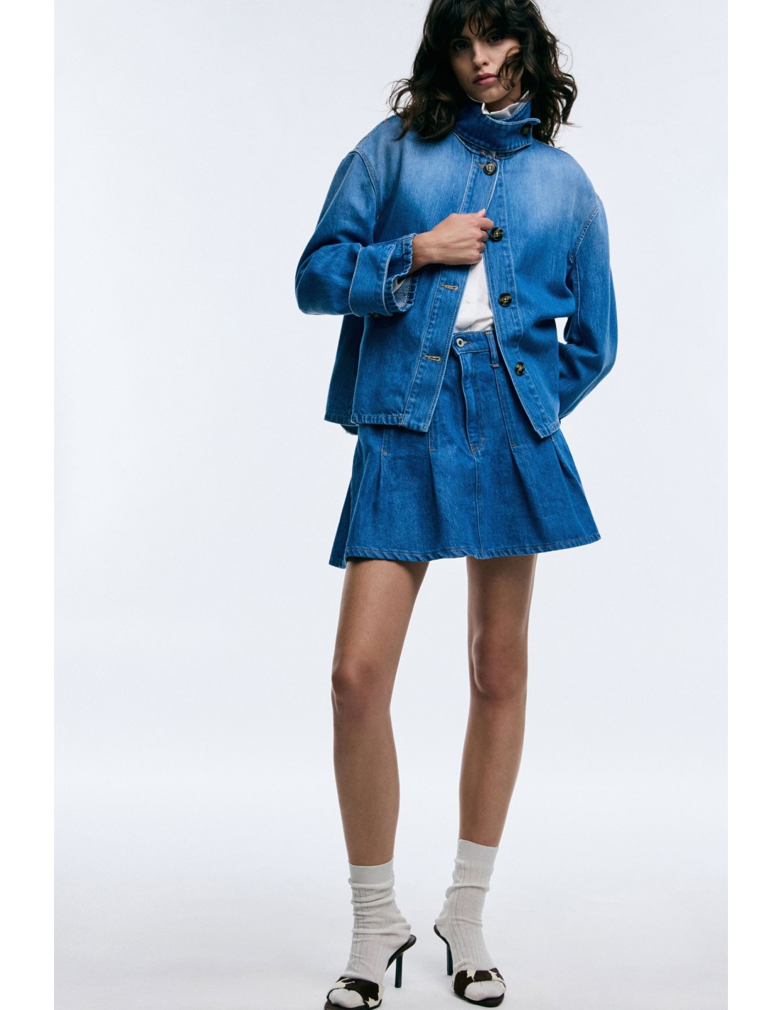 Skorts com silhueta evasê, cintura alta e bolsos frontais, perfeitos para quem quer mover-se com liberdade sem renunciar ao estilo. As pregas acrescentam um toque divertido, ideais para combinações criativas em looks urbanos do dia a dia. Fáceis de vestir com uma camisa ou uma t-shirt para um toque contemporâneo.